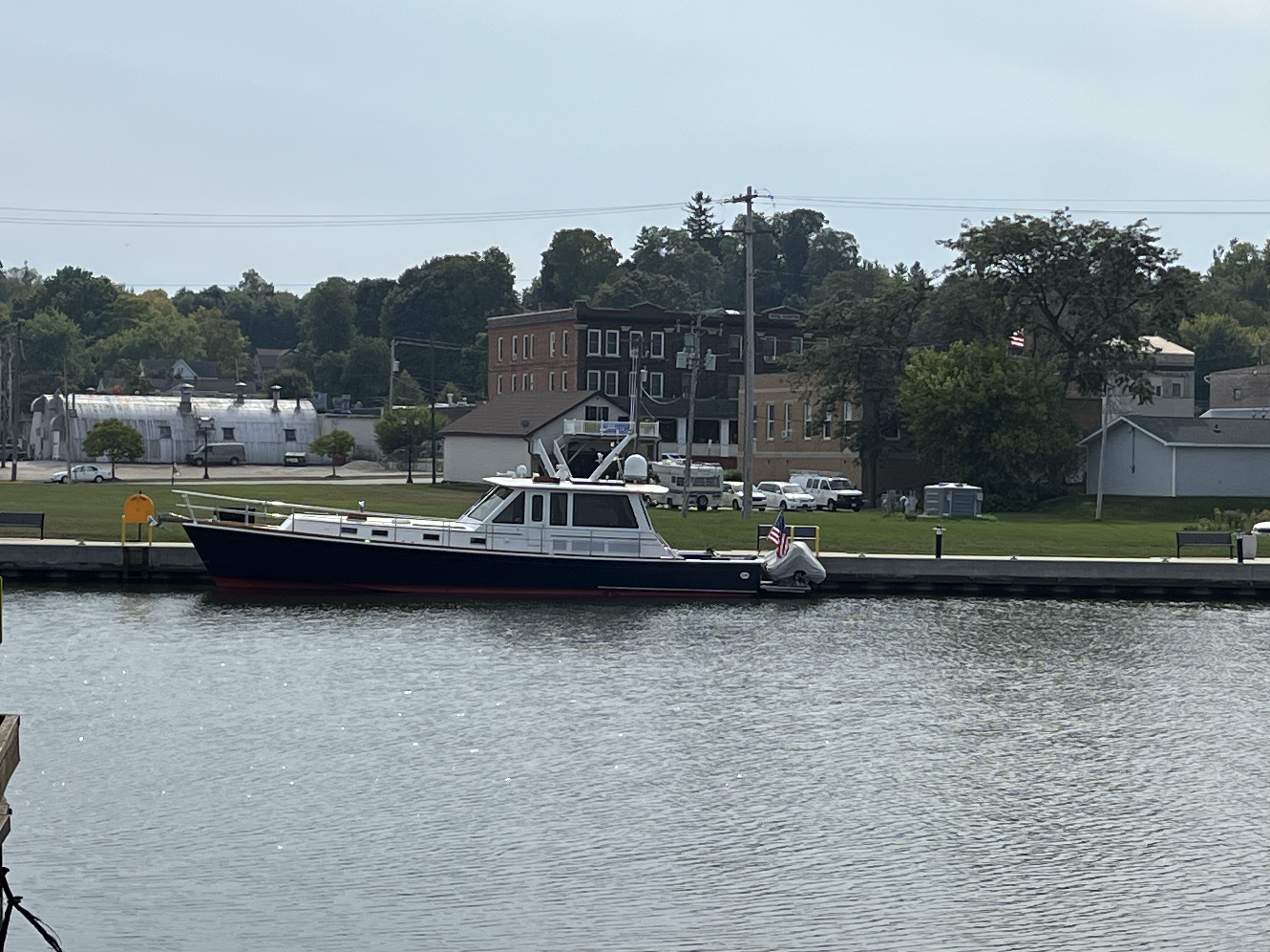 Nice slow start to the day after a great night’s sleep. Getting out of town took a lot out of us and we went to bed before 9PM. Left the Sturgeon Bay Yacht Club at 9:25 am for the long slow run out of the canal to Lake Michigan. Didn’t need to wait on any bridges today, but did have to miss a few fishing boats. Apparently you can only catch fish in the middle of the channel!