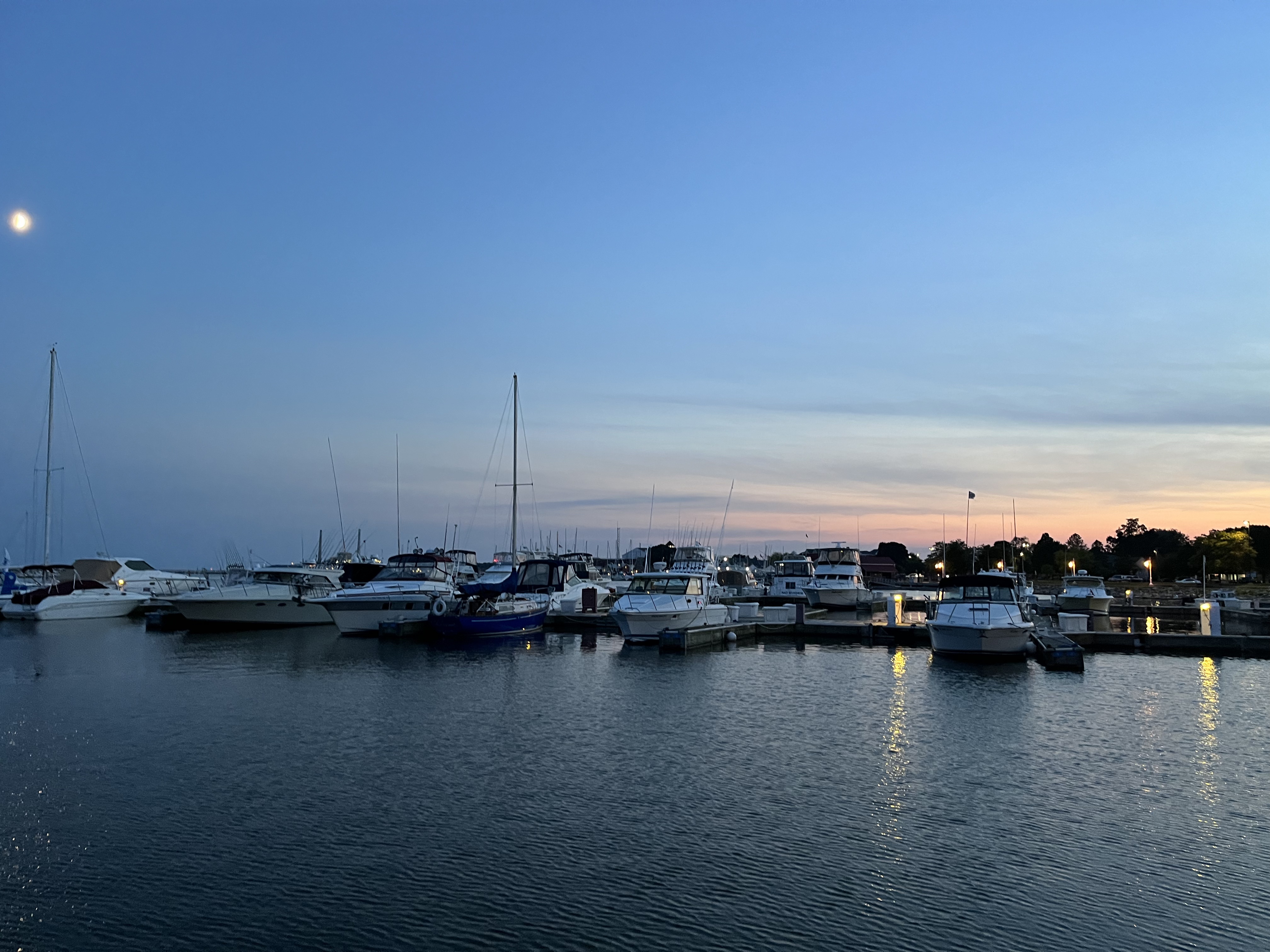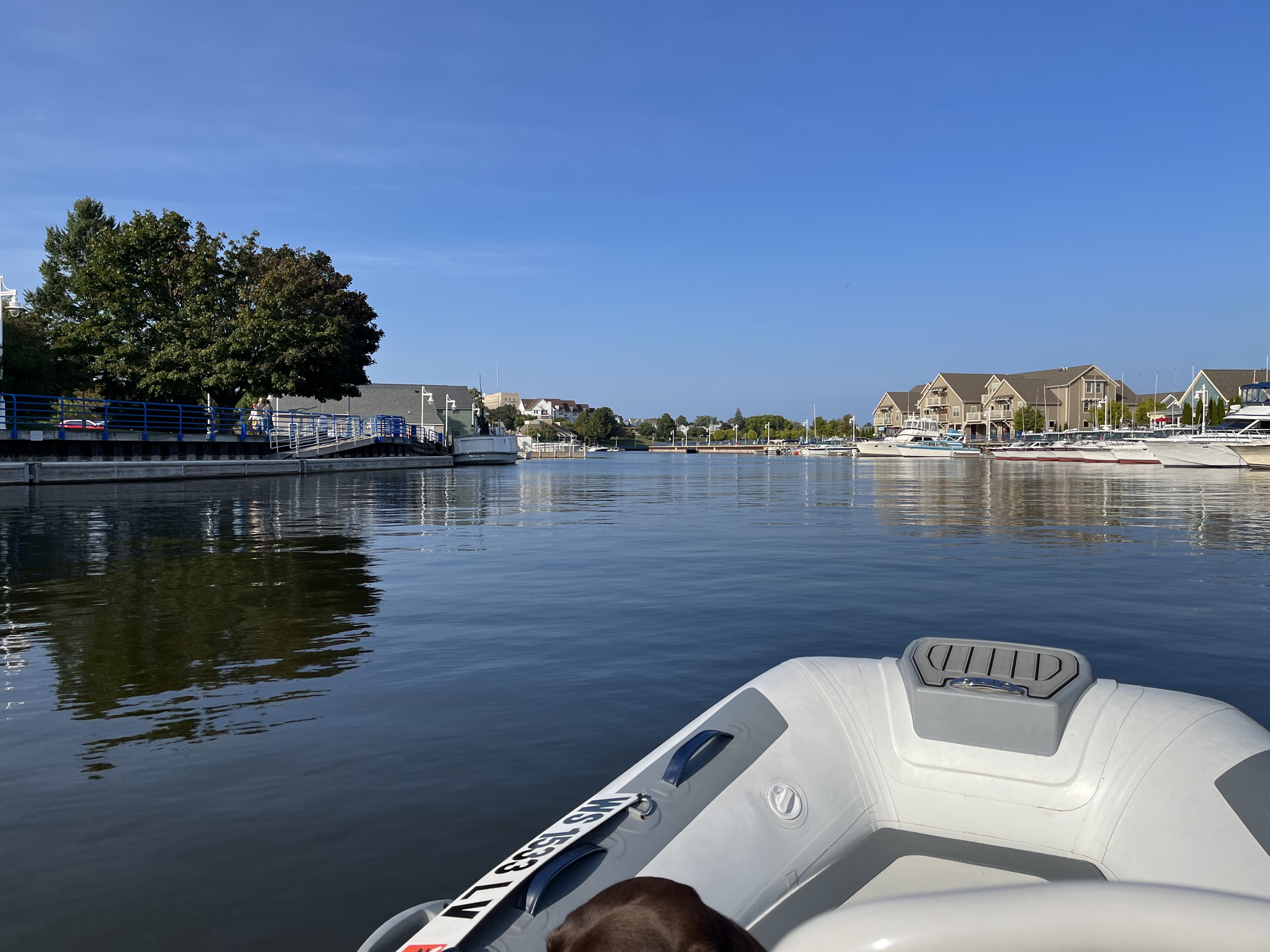 Last we posted, we had arrived in Sheboygan and still needed to head out for dinner. Boy was that fun. We took the dinghy from the marina into the river and up to all the restaurants. We were able to tie up and walk right into a fun restaurant.