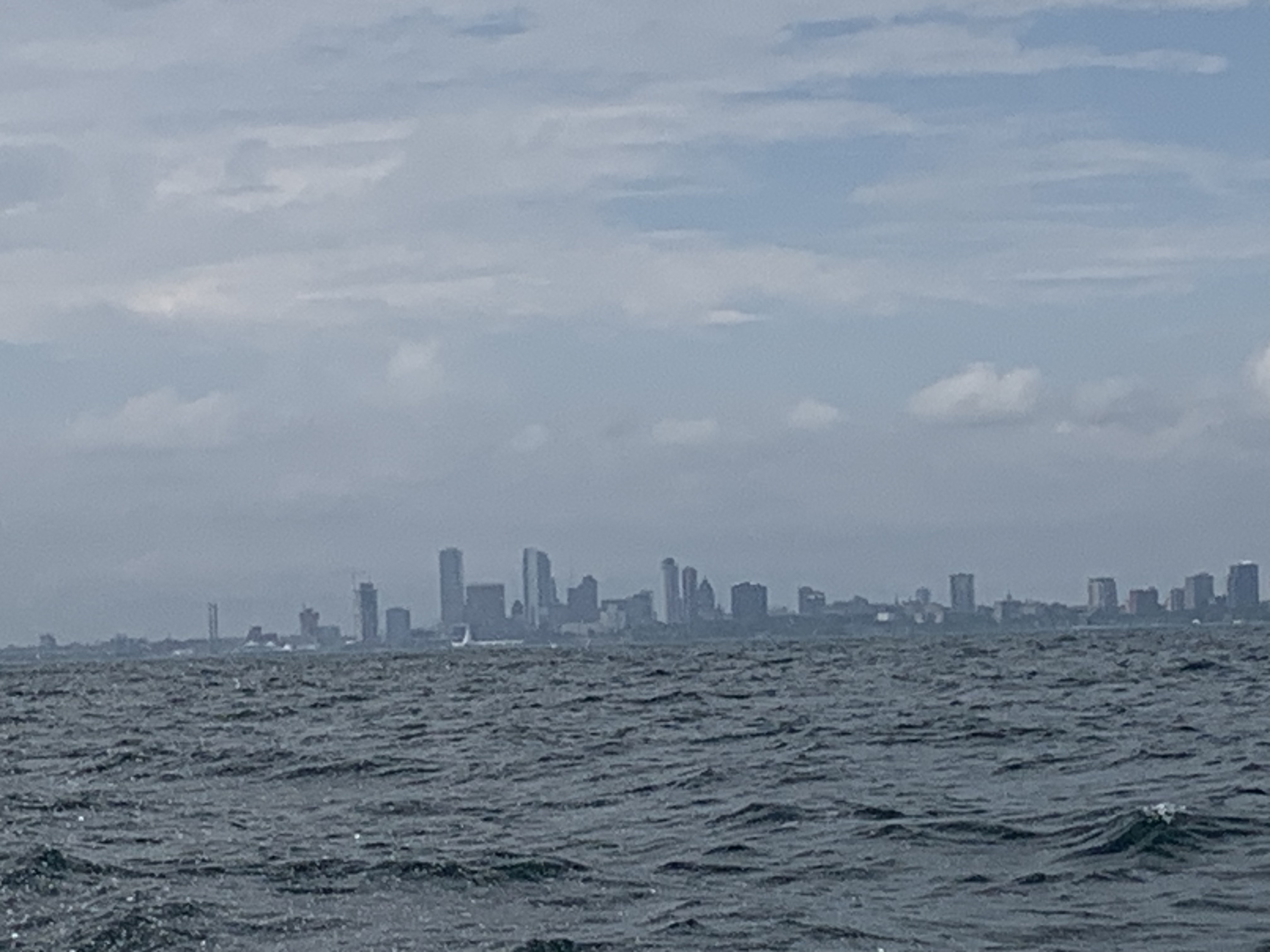 After many discussions with my weather advisor, brother Skip, Amy and I decided we would try to run the Lake again today. We all agreed that with the forecast for the rest of the week, our best weather window to move South was from about 11am to 4pm today. At 11am, Amy and I agreed to give it a try and if the water was anything like Sunday, we would return to the harbor in Port Washington. Wind had dropped to 8-10 knots and waves were forecasted at 2-3′. A lot better than the 20+ knots of wind and 6′ waves we had the other day!