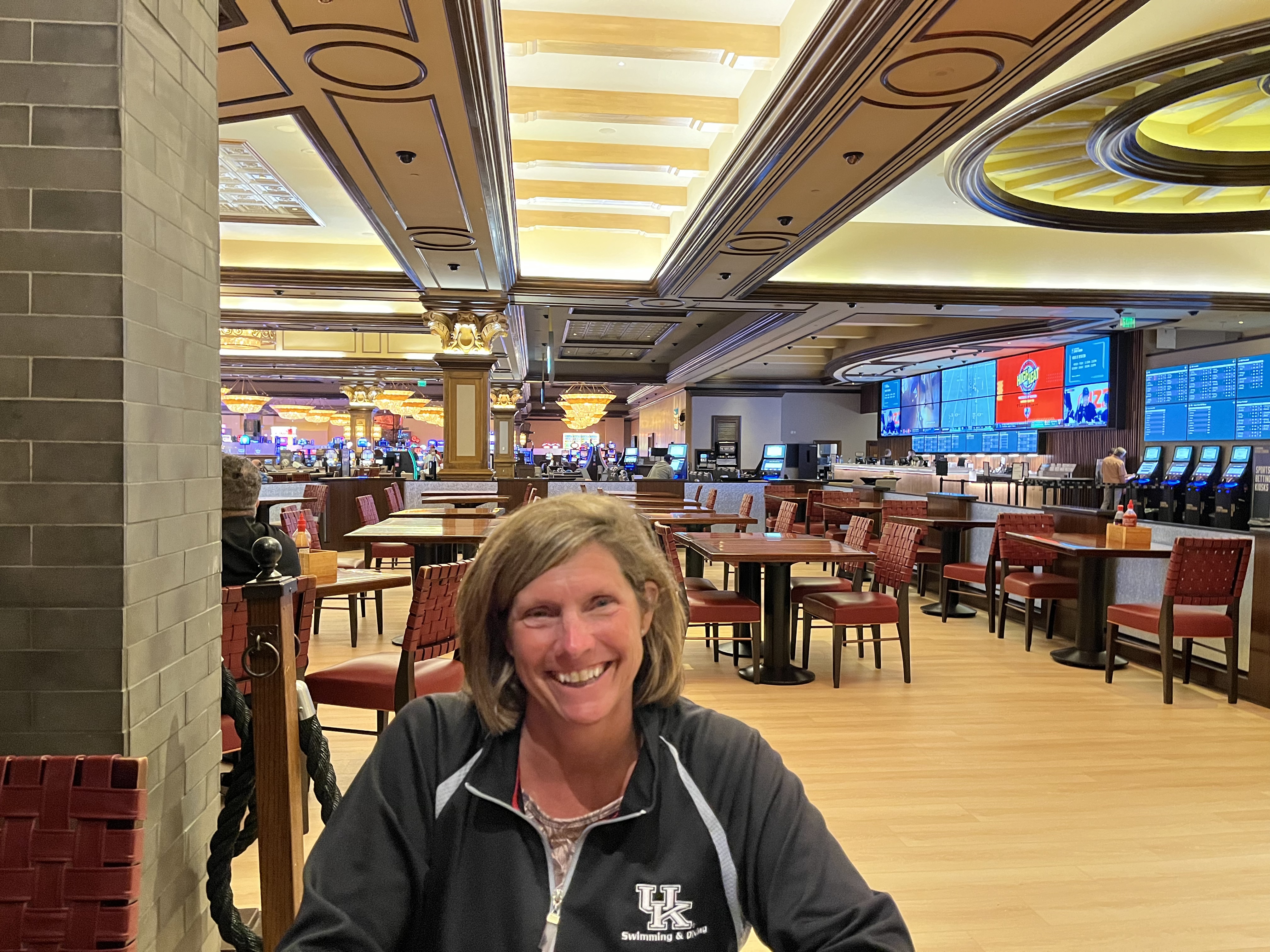 Amy enjoying our one meal in the casino!