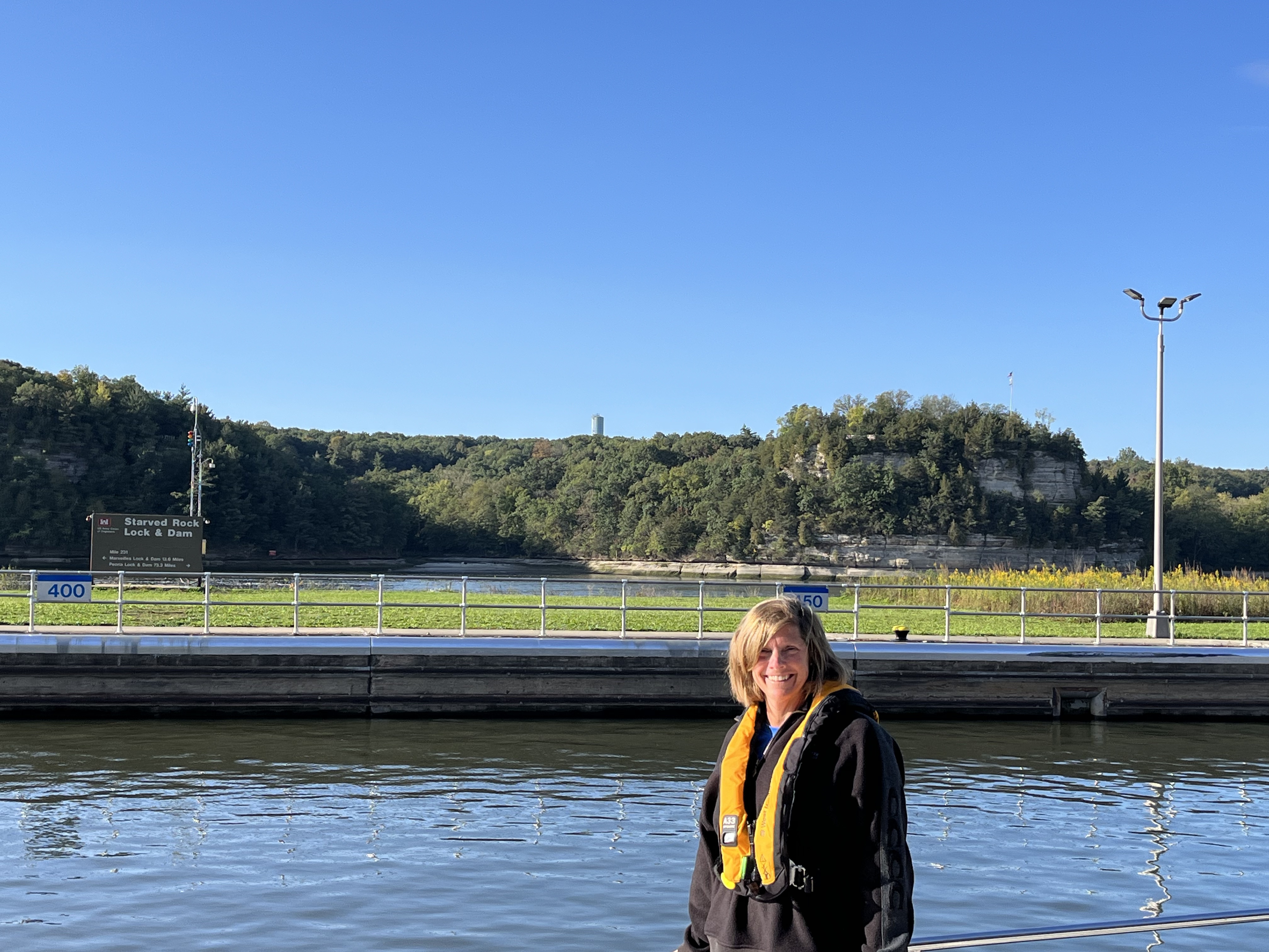 Great pictures of Starved Rock Park behind the lock and across the river dam.