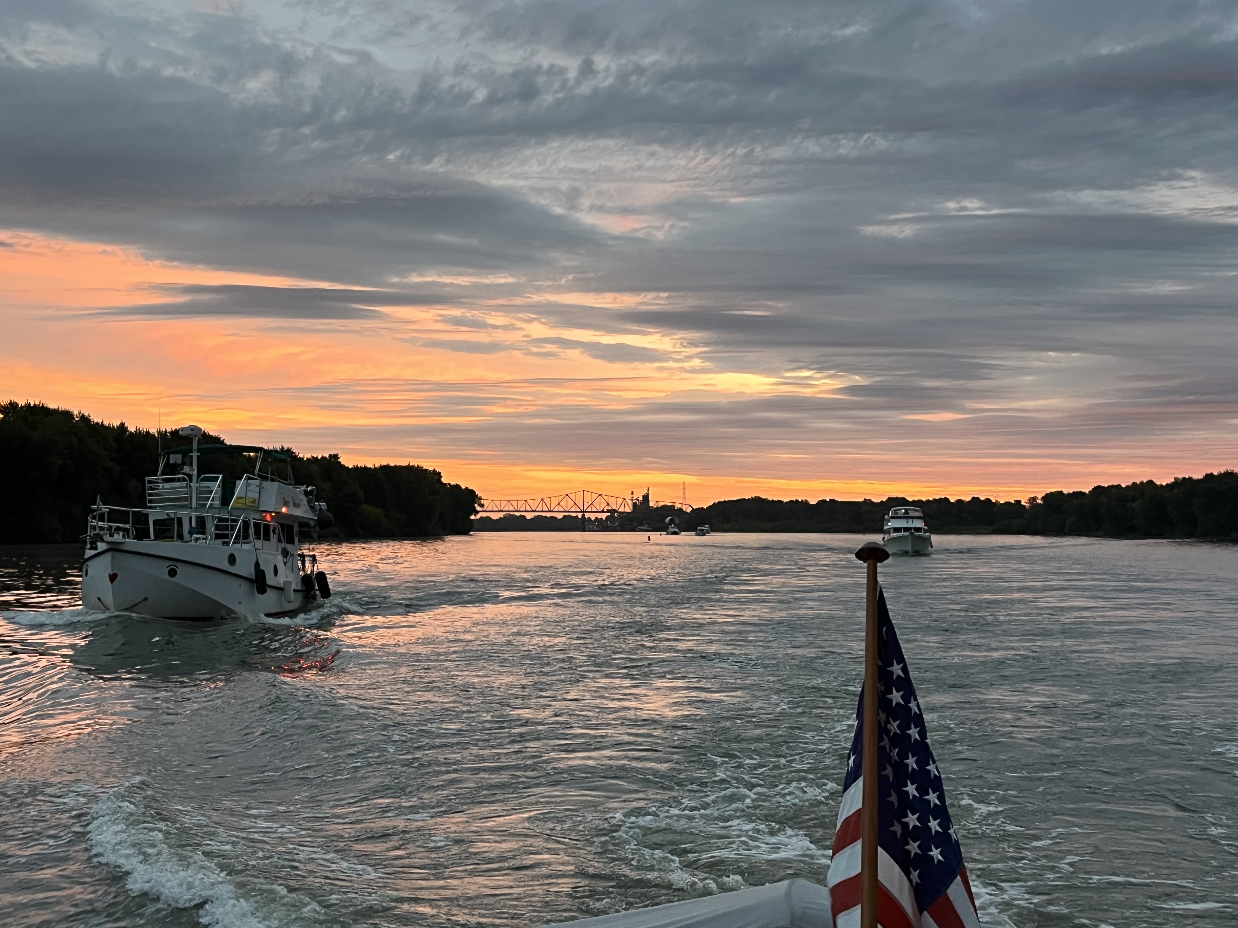 We once again started the day early to get ahead of commercial traffic in the LaGrange Lock. Pulled off the dock before sunup at 6:50am. We had 8 boats following us, but none of them were planning to go as far as we did today.
