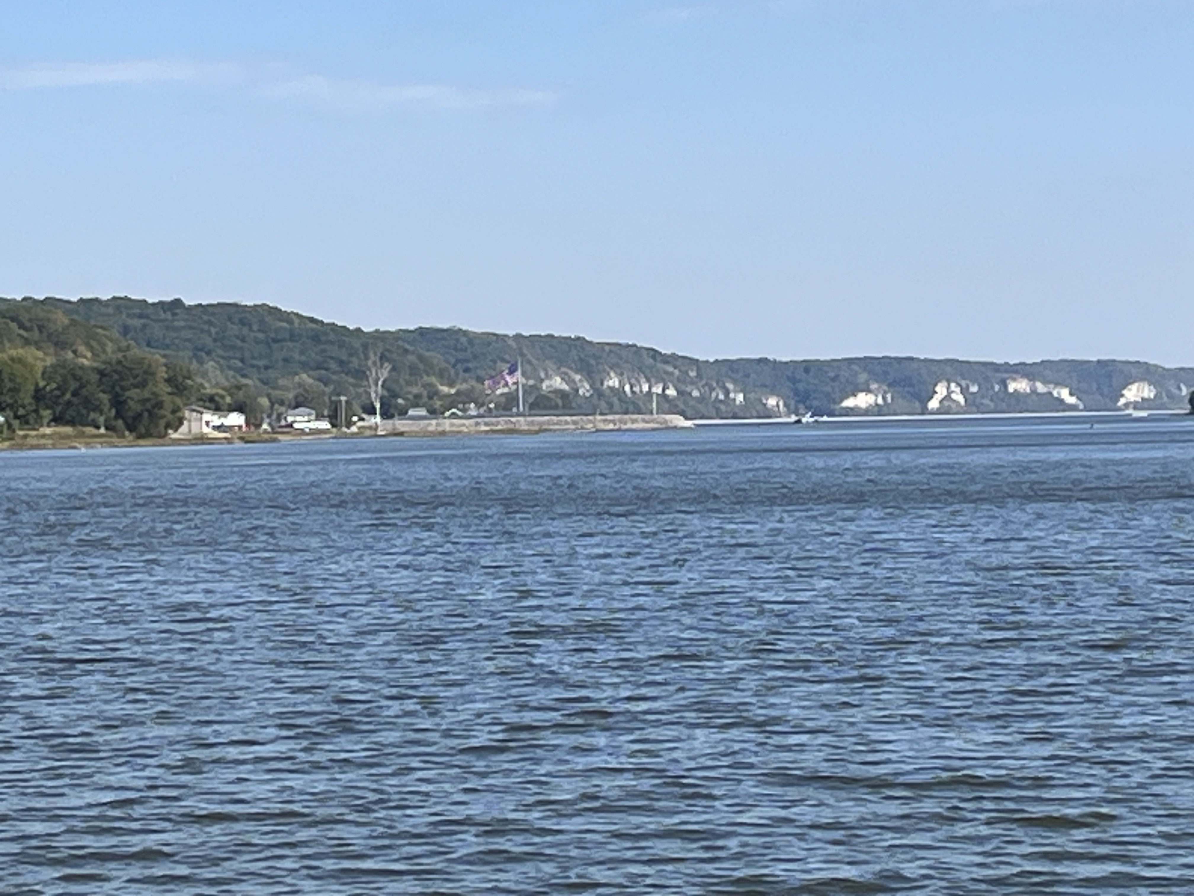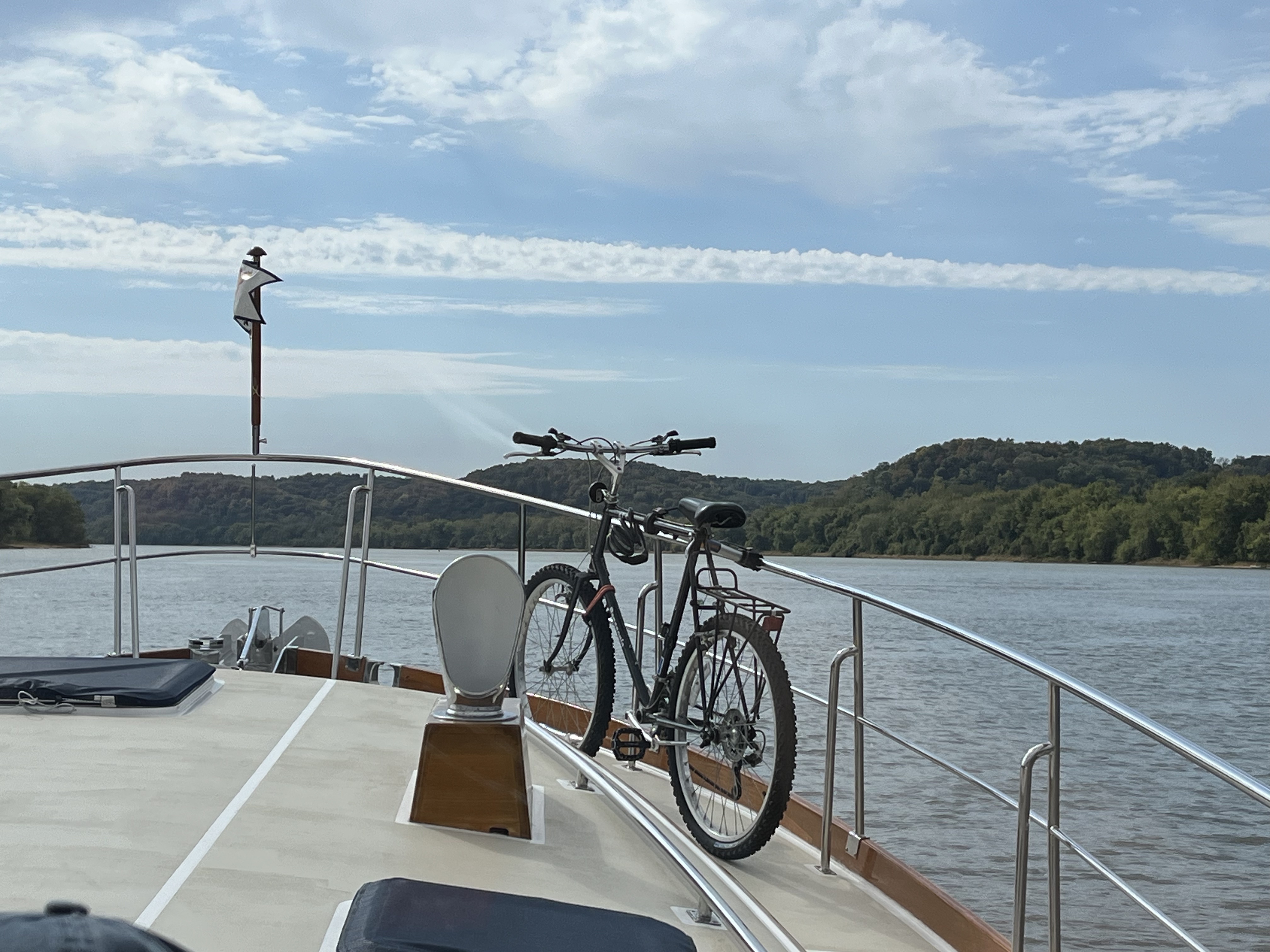 We did have to wait for the lock for about an hour today, but there was only one lock so we were able to make up ground quickly after that. Here are some pictures of the river as we headed south today. We started to see some hills, instead of just flat land! Even though the river looks wide and nice, you are running in 9-15 feet of water most of the time. We did get to see 20’+ today as we got closer to the Mississippi River.