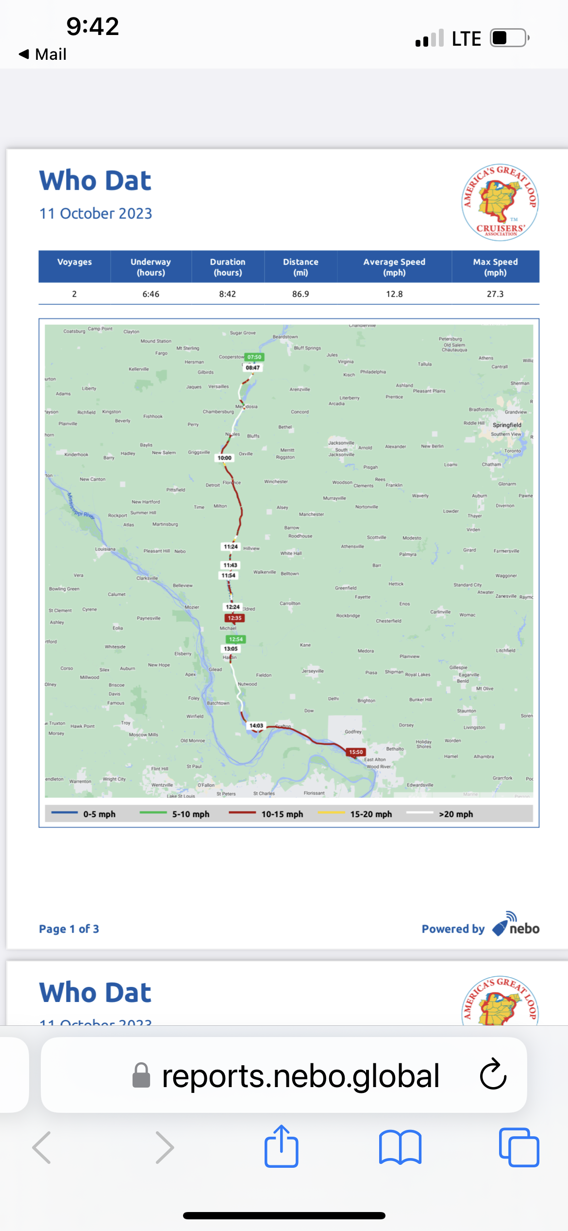 We knew we had a long day ahead, as we planned to go from Beardstown to Alton, IL. This would finish our trip down the Illinois River and put us into the Mississippi River! Here is the NEBO log from the day. Amy and I both keep forgetting to turn the log on as we leave the dock each day. We actually traveled 104 miles today. To get into Alton before dark, we ran a little harder today, and even did some normal cruising speed. A little nerve racking to run the river at 25 MPH!