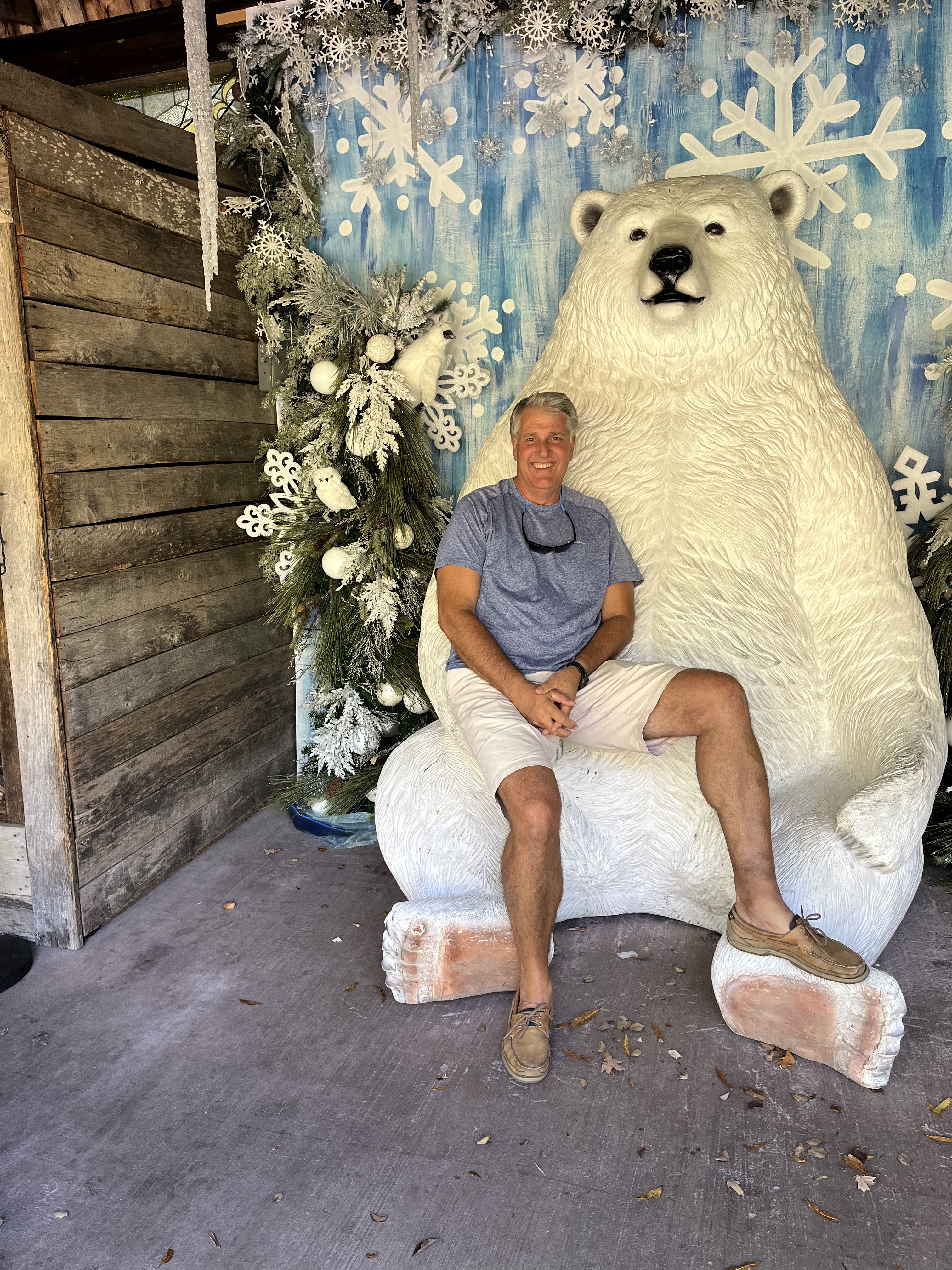 They have a condo in the area, so they stopped over to see the boat and then we went out for dinner at Patti’s for the famous Patti’s Pork Chop! It was fantastic, and thank you Skip and Jeanette for dinner. A visit to their condo for dessert, and then back to the boat. We walked around Patti’s village and in typical Skip and Scott fashion, had some fun!