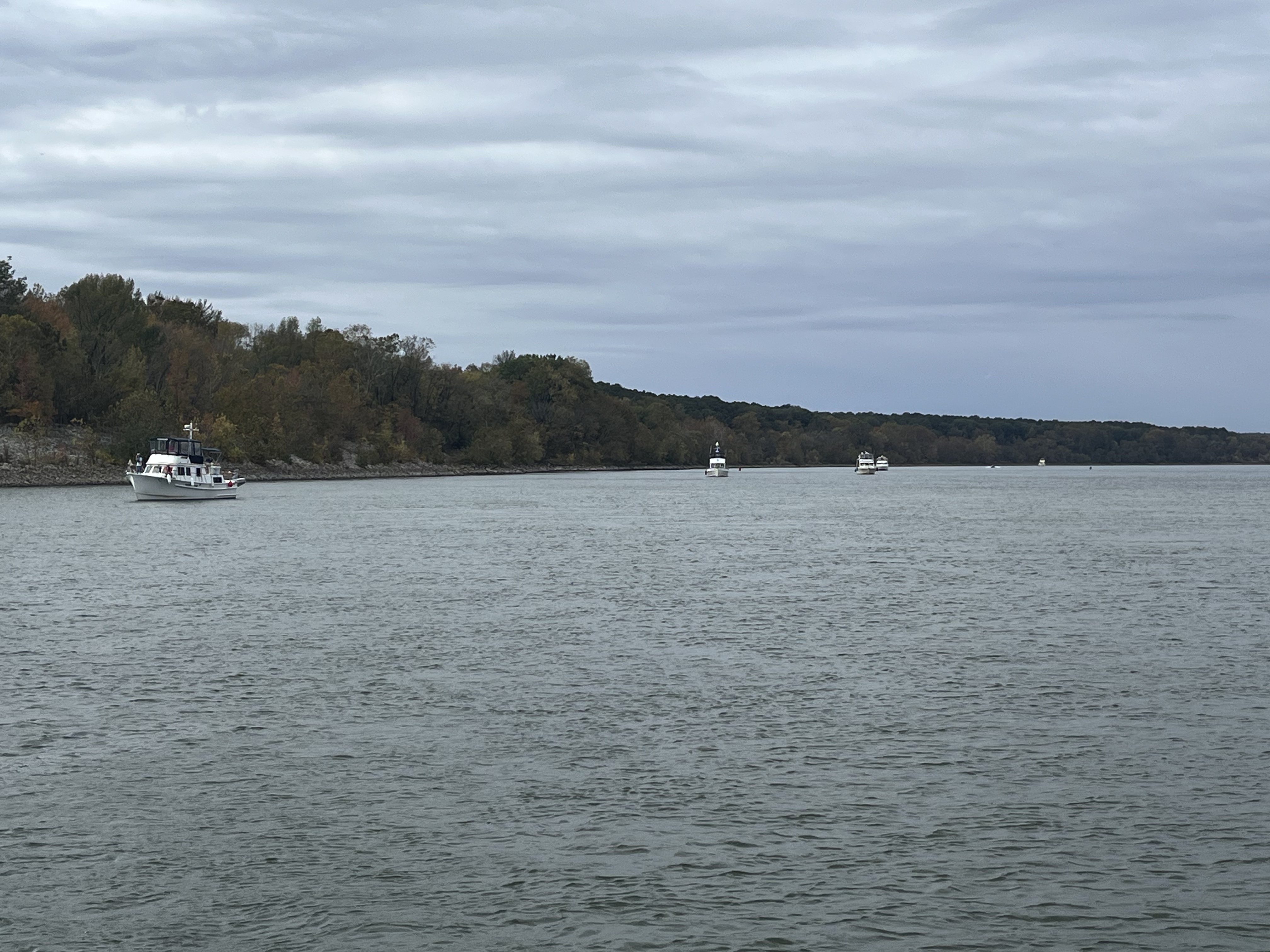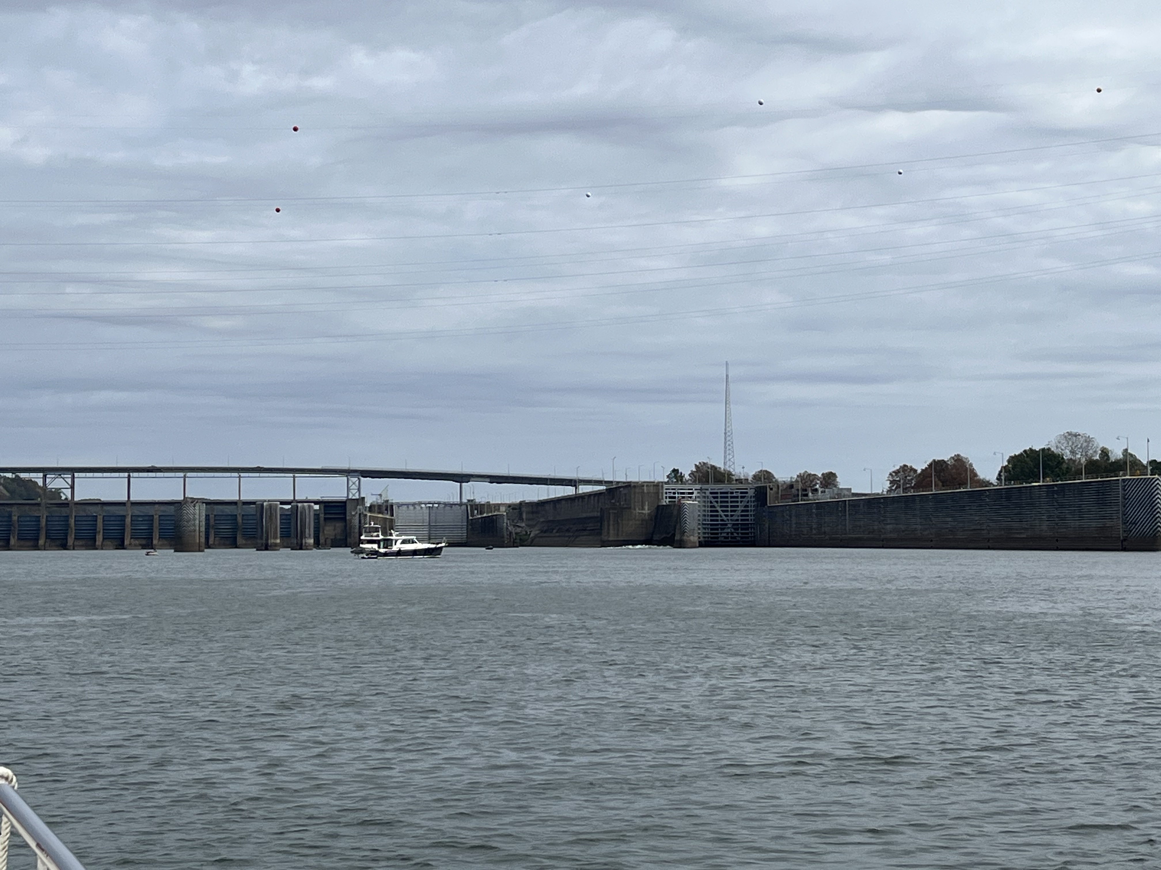 We planned to run about 50 miles Friday with the group. We had to lock through Pickwick Lock and Dam, to enter Lake Pickwick. We arrived at the lock with a total group of 8 boats to lock through.