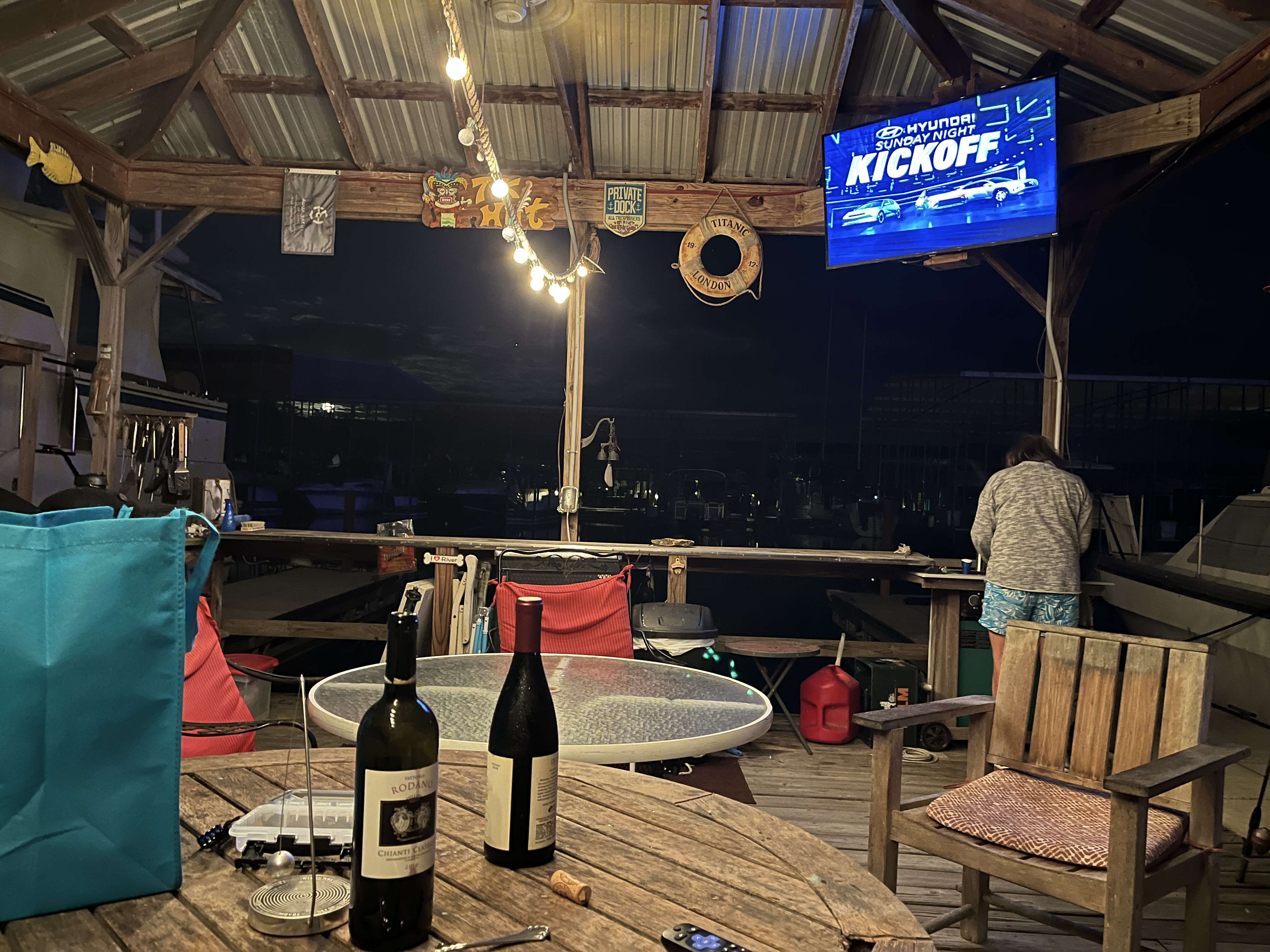 After they headed back home to Memphis, Amy and I spent some time with other Loopers enjoying a dock lounge at the harbor to watch the Bears Game! All was fun except for the Bears!