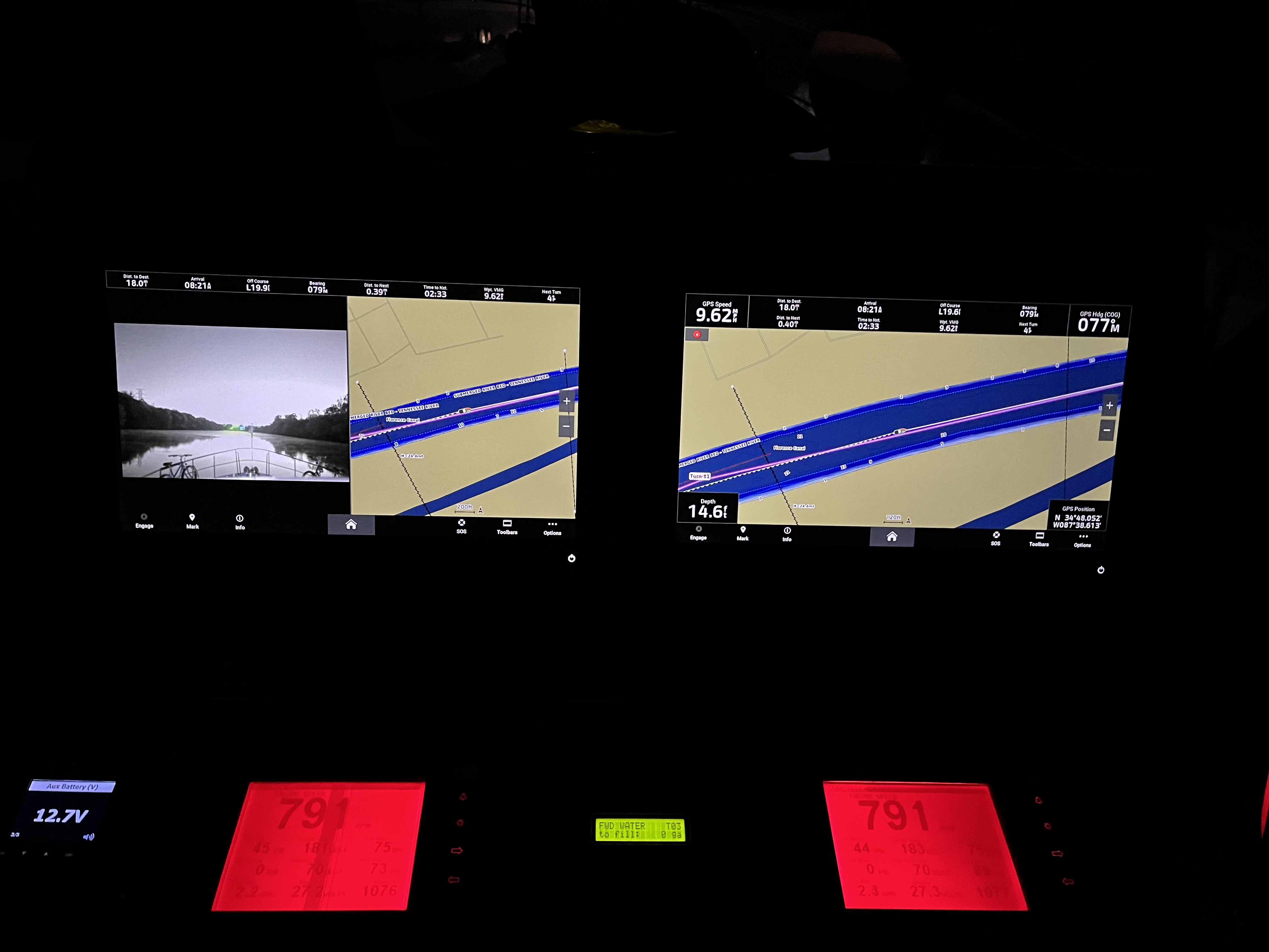 We pulled out in the dark, and I was able to use my new Scionyx night vision instrument. It worked great. It is pitch black outside, but the view on the left of my screen is the night vision.