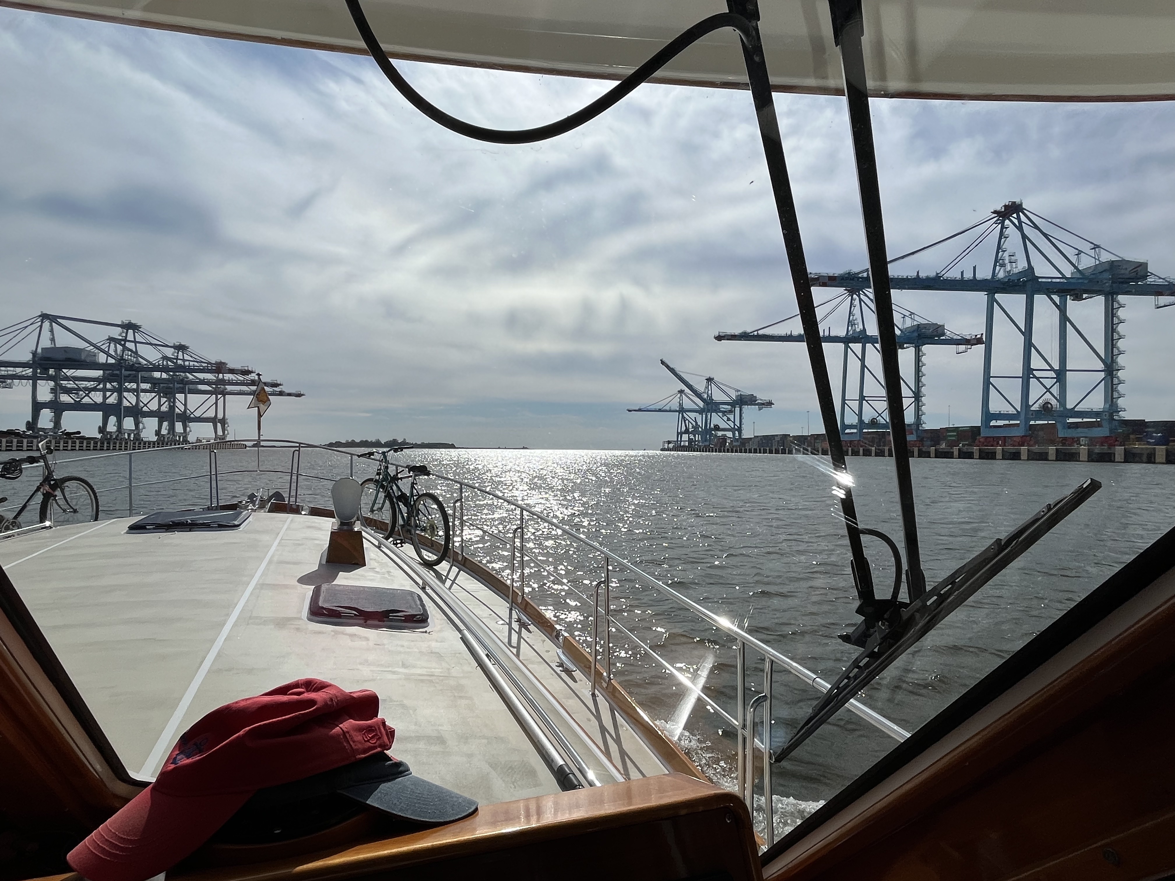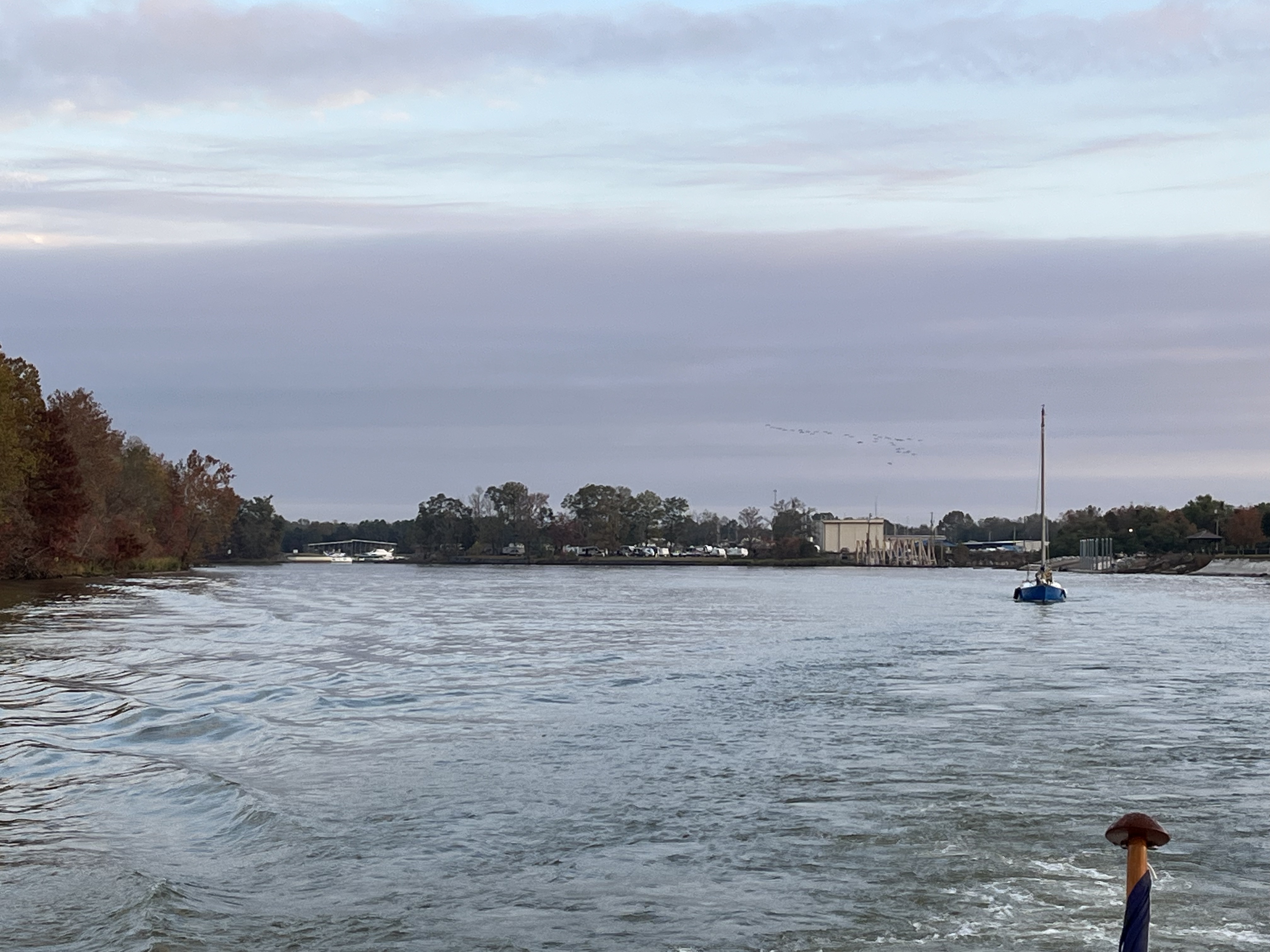 We were not happy to run the extra 40 miles today as the winds picked up all day. 20+MPH and the Bay will get rough today. Slow running is over for us today so we don’t get knocked around in the waves.