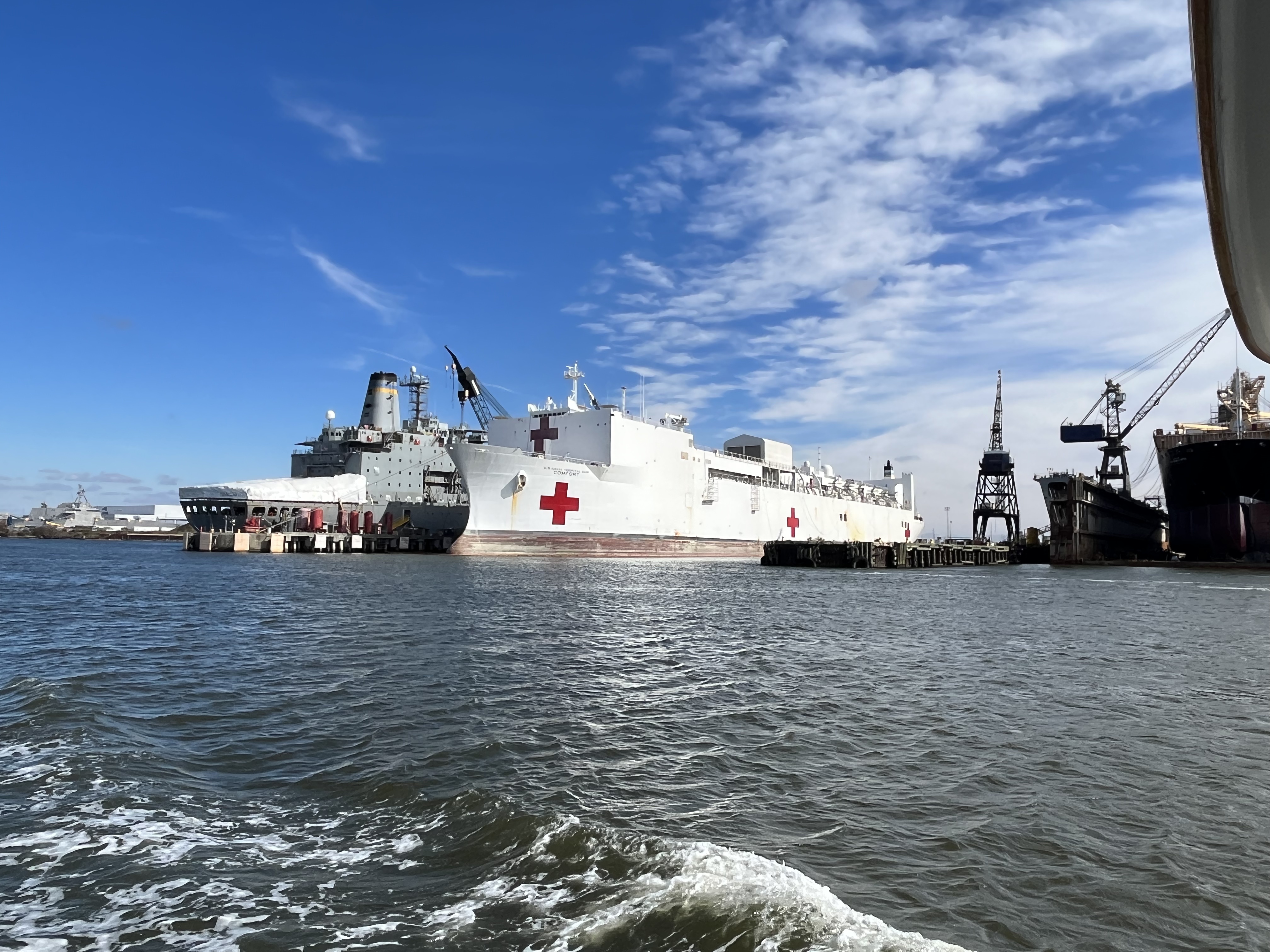 By the way, COVID must be over, as one of the hospital ships is here being worked on.