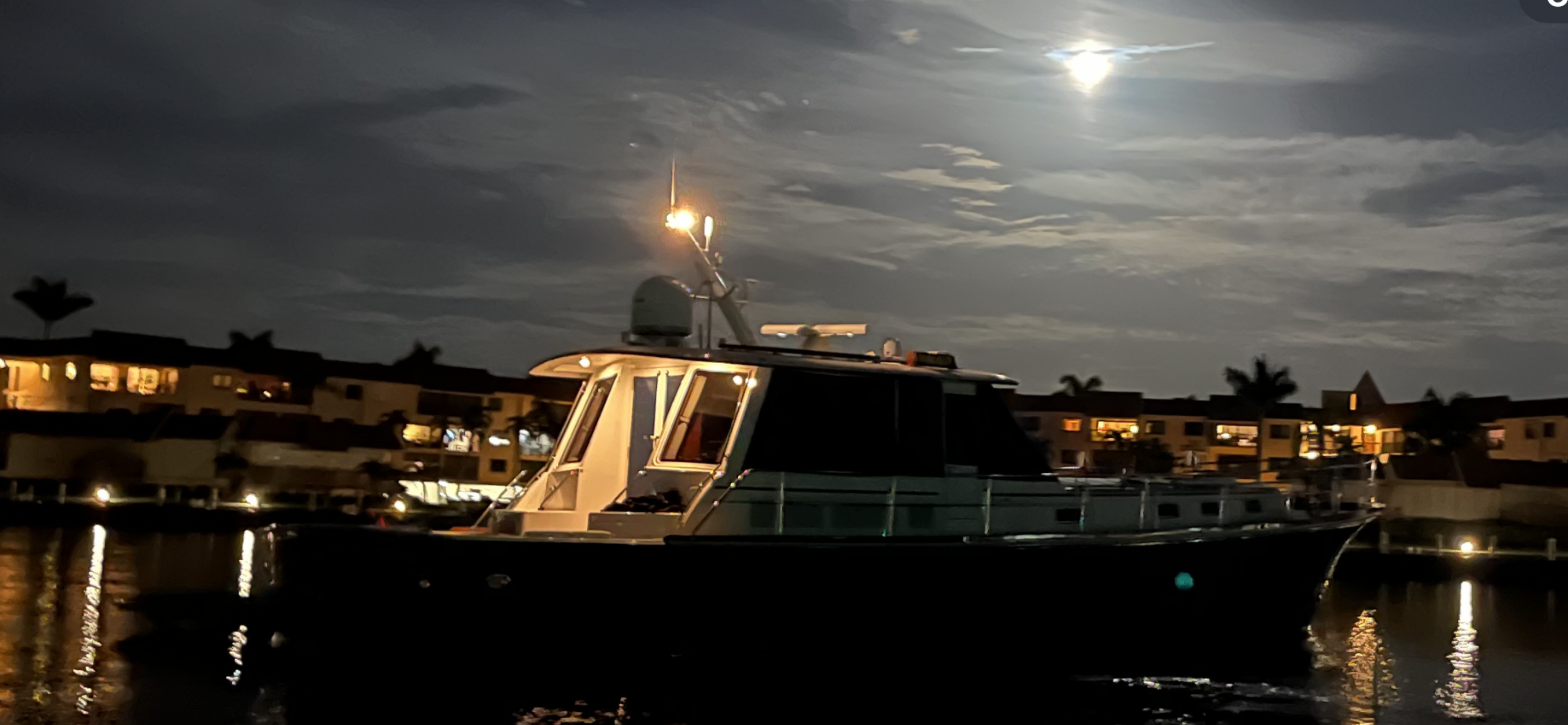 Last night’s full moon over the boat on the hook. Took this from the dinghy on our way back from a party at CJ’s while we were taking Memphis out!