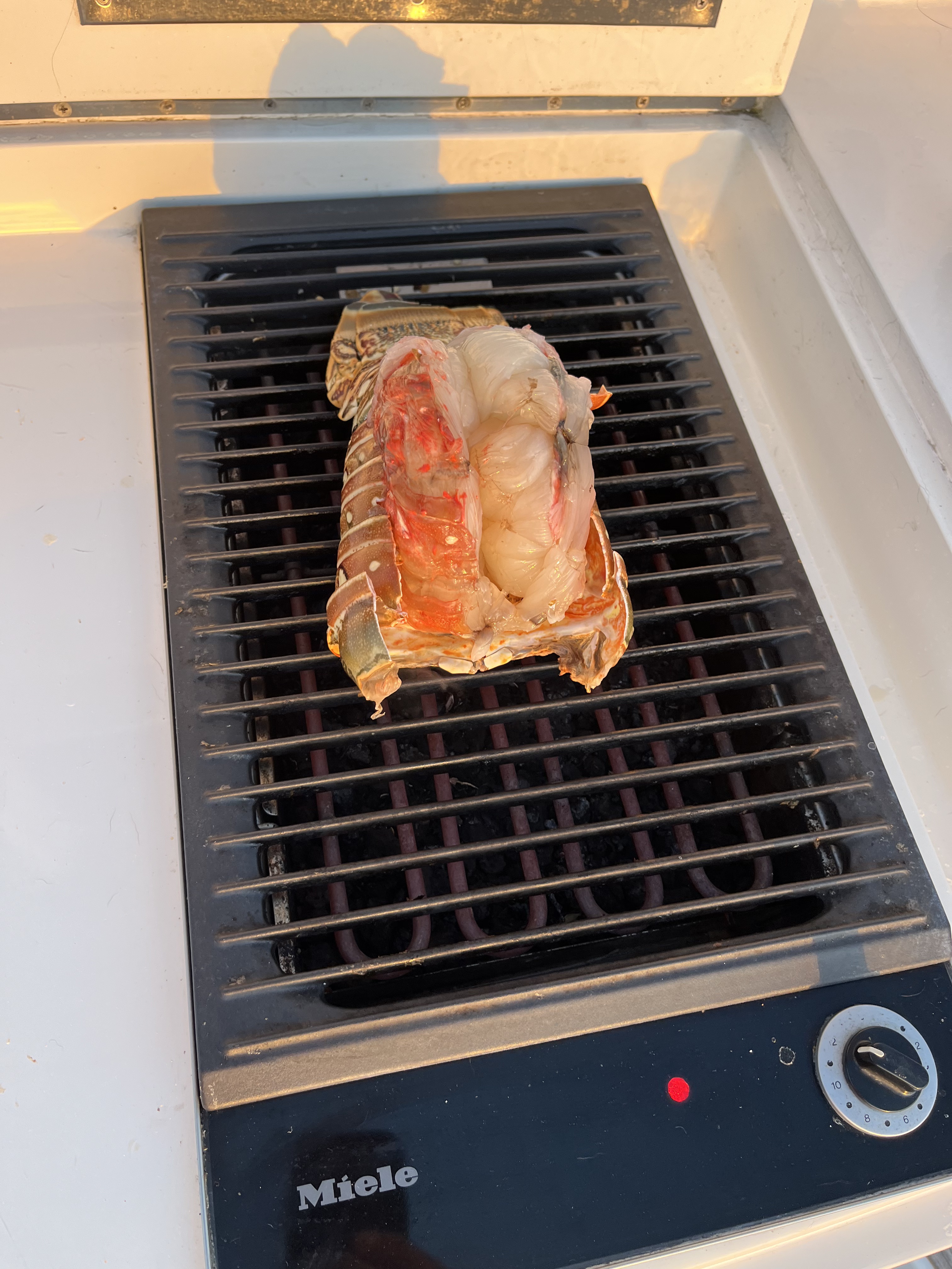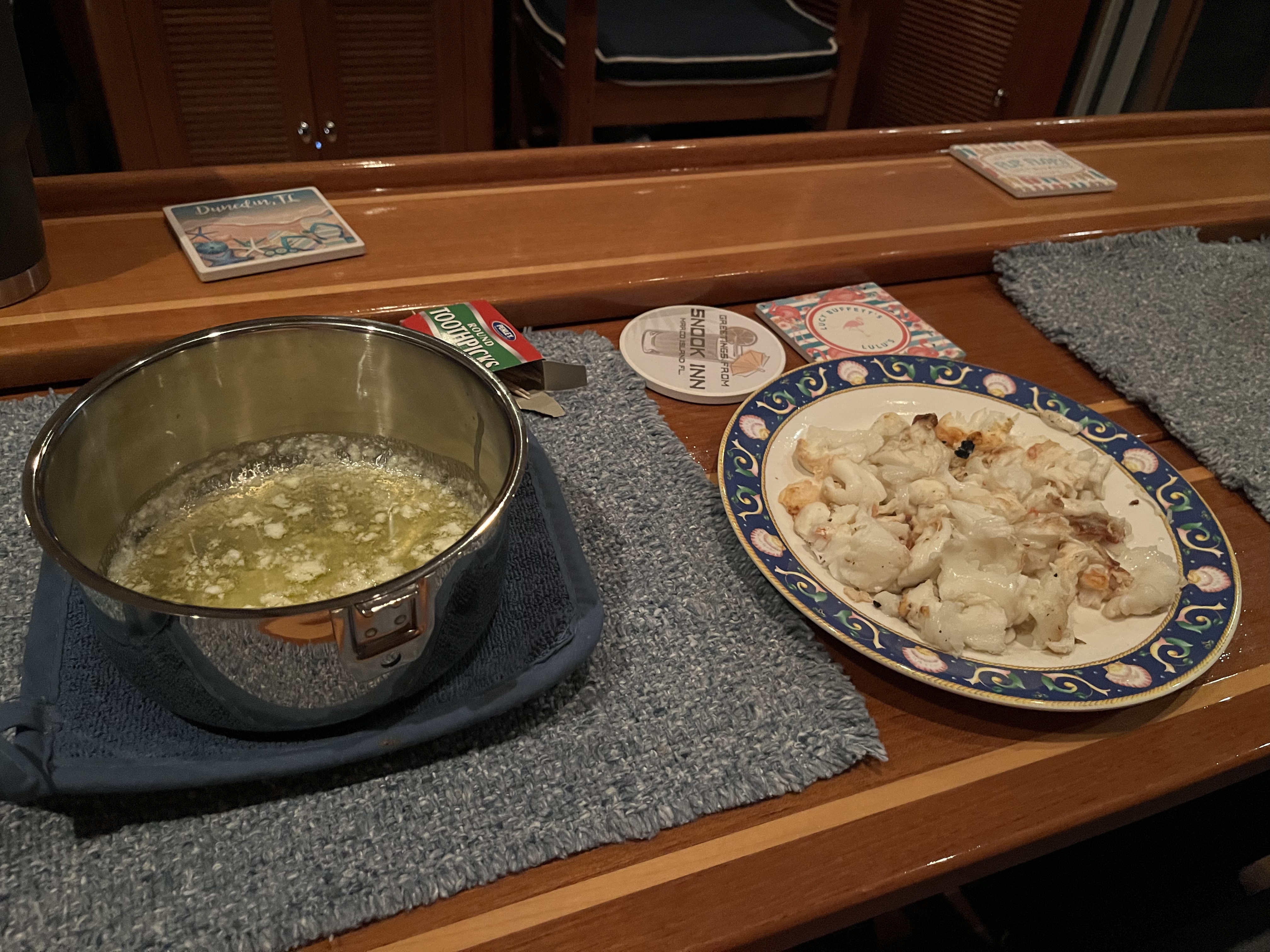After enjoying the sunset while cooking up a lobster appetizer before hog fish dinner!