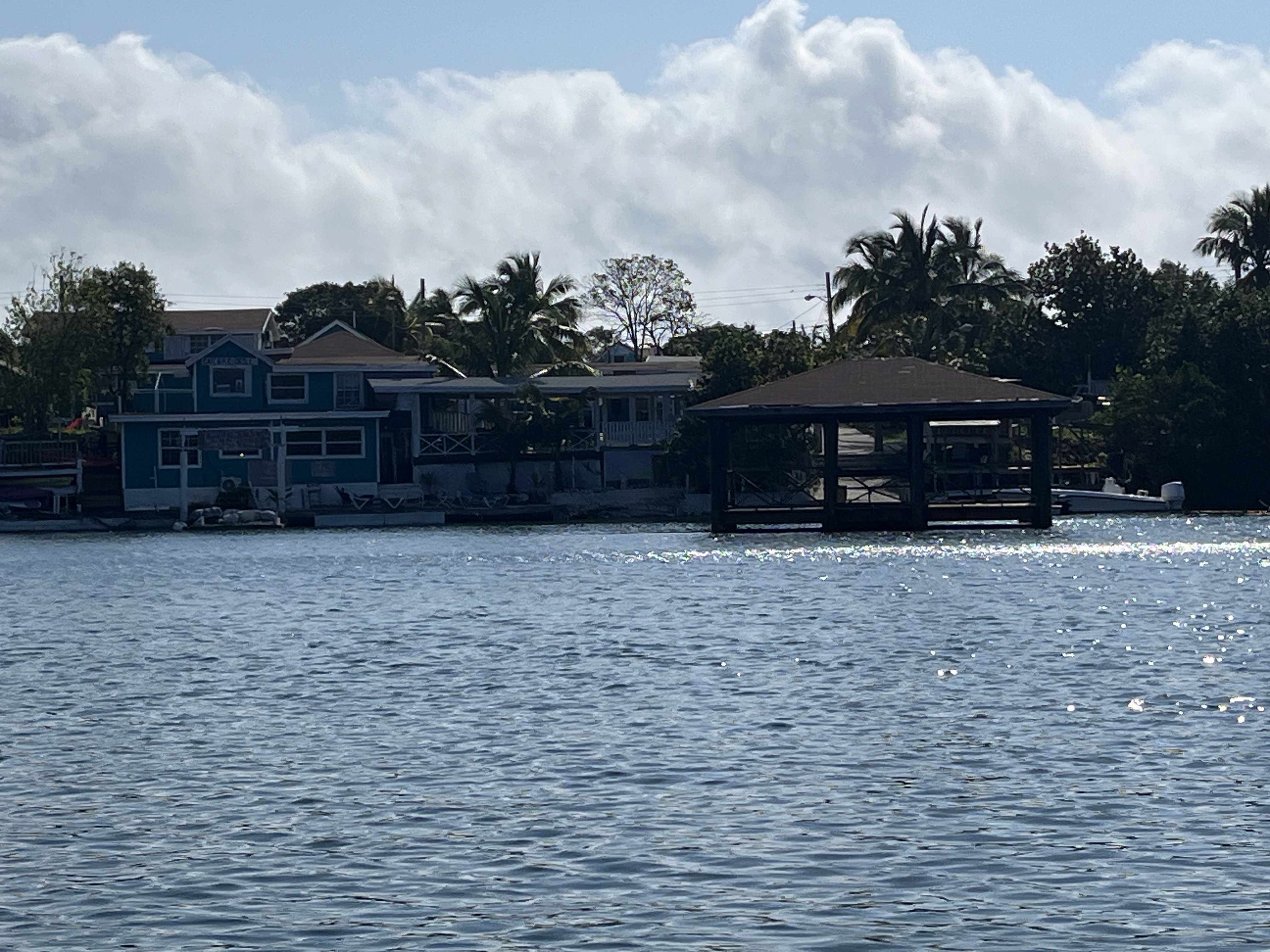 There was a very small bar and grill with a dinghy dock at one end of the hole, so we enjoyed a few drinks and local entertainment Sunday night with a lot of other boaters. I think we all wanted off the boats for a bit after the run into the bay that day!