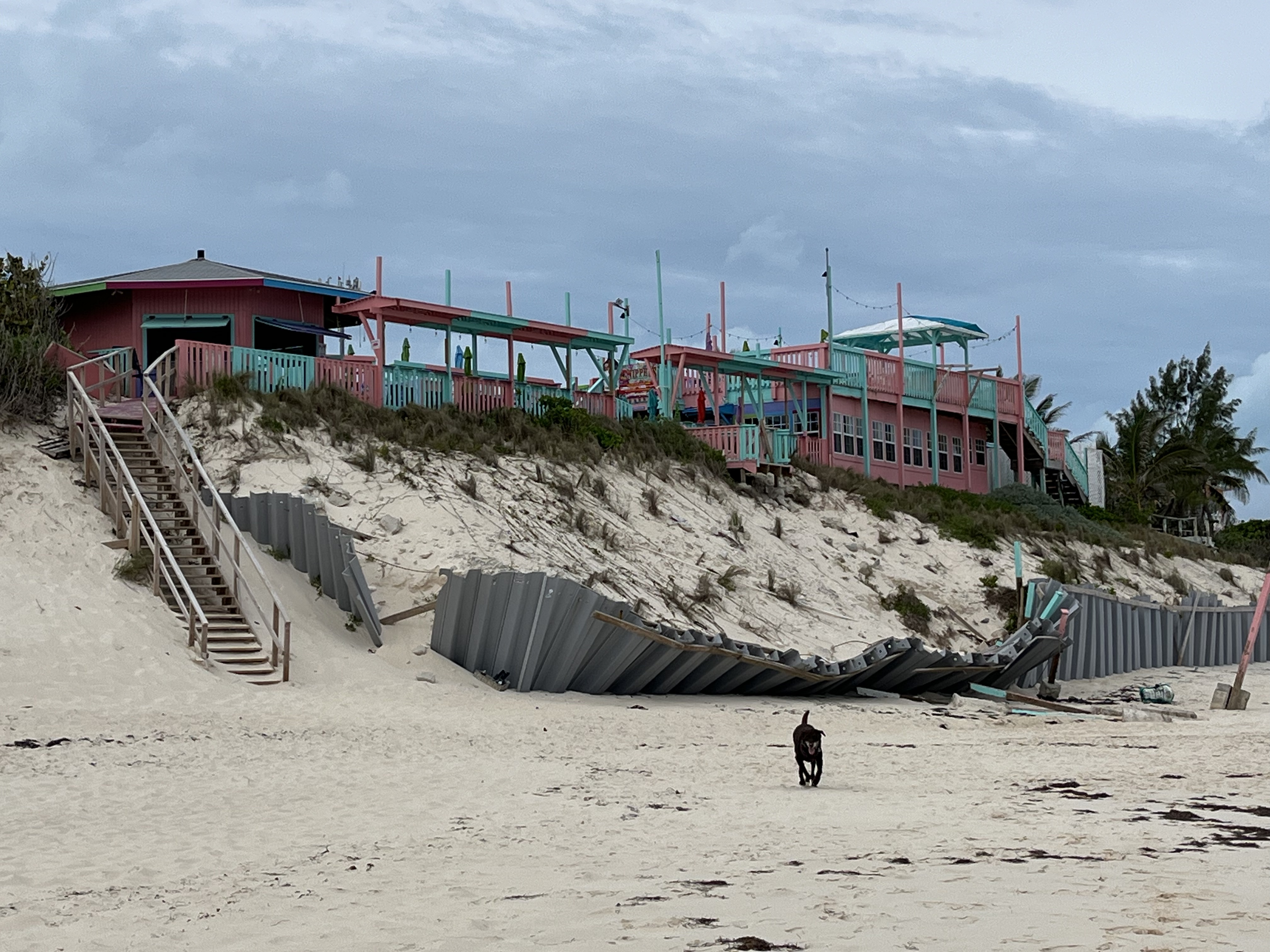 Memphis, running the beach below Nippers Beach Bar on Great Guana Cay. Still plenty of damage to be fixed.