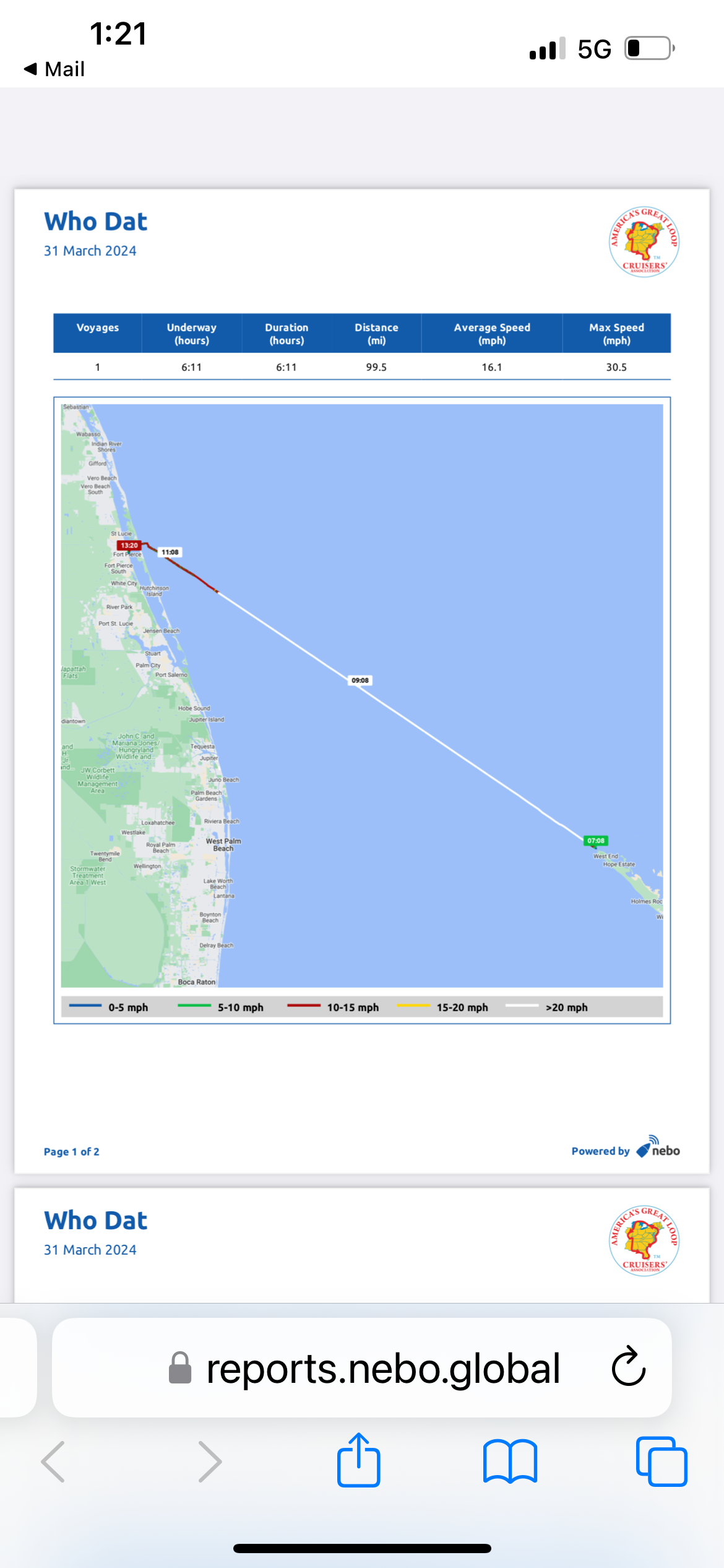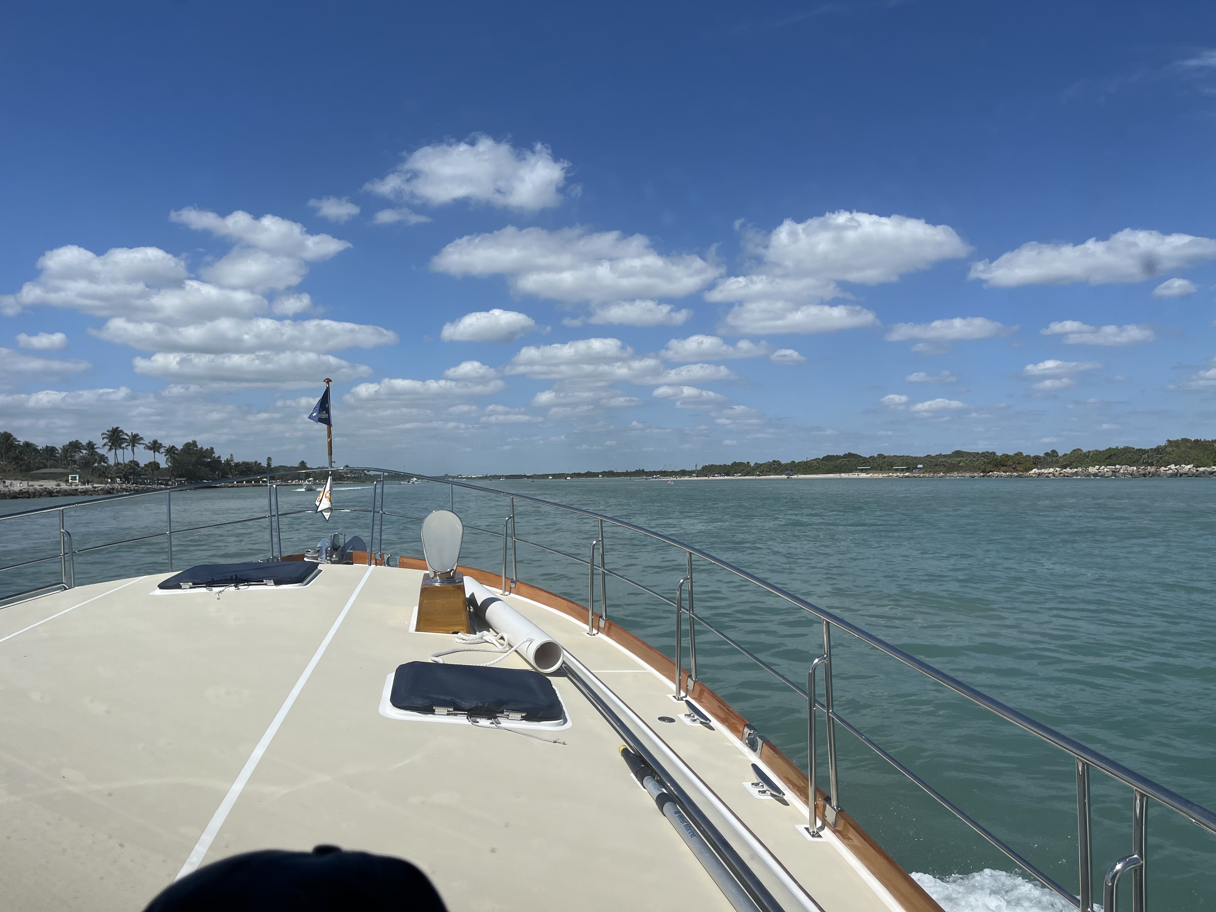 We had planned to arrive in the West Palm area, but we decided to take advantage of the Gulf Steam and angle further north. We got a 2 MPH boost and burned less fuel taking this angle. It did mean a 100-mile day instead of the 55 miles straight across. (Plus we didn’t get to see Gretchen)