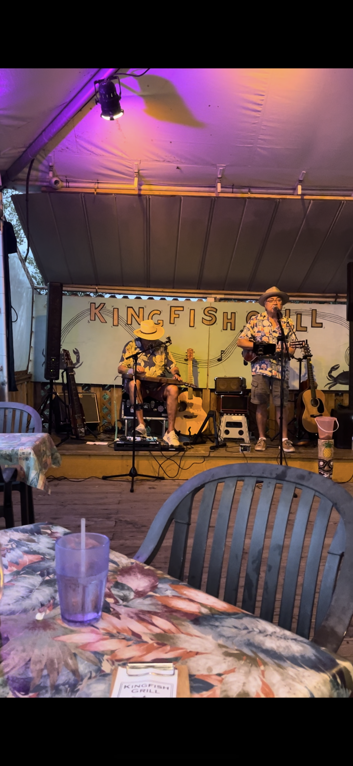 Dinner out by the harbor with some local musicians.