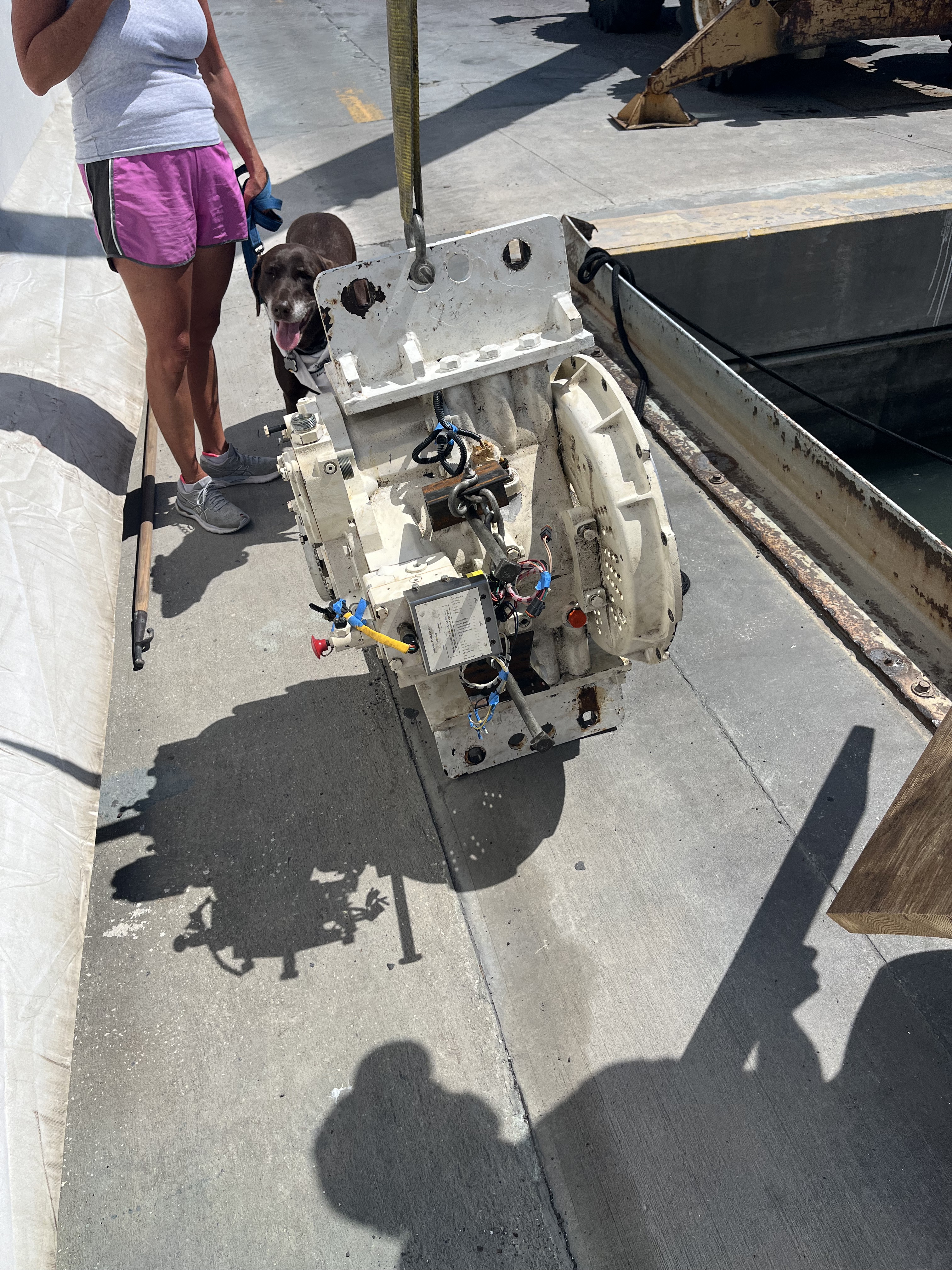 The Camachee Boat Yard and the owners, Peter and his family, have been great to us. They were able to get a couple mechanics free between jobs, and they spent 2-1/2 days unhooking and getting the transmission removed from the boat. They started on Tuesday and the transmission came out Thursday morning. I also want to thank Travel Lift and their ownership and employees, for their great support getting parts and a service tech here to fix the yard’s travel lift so they could continue the work on our boat.