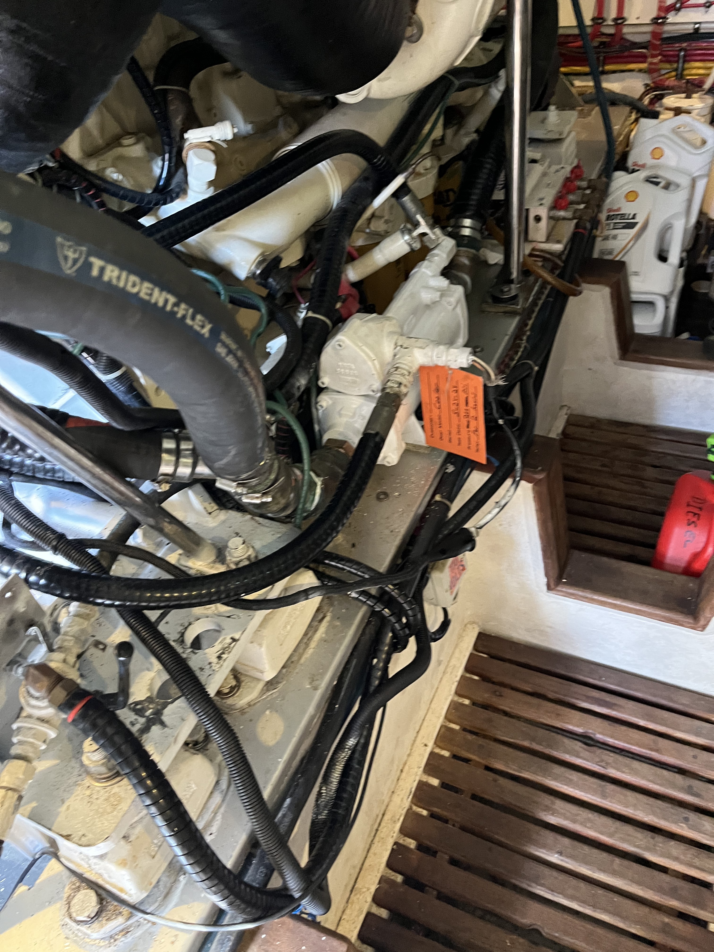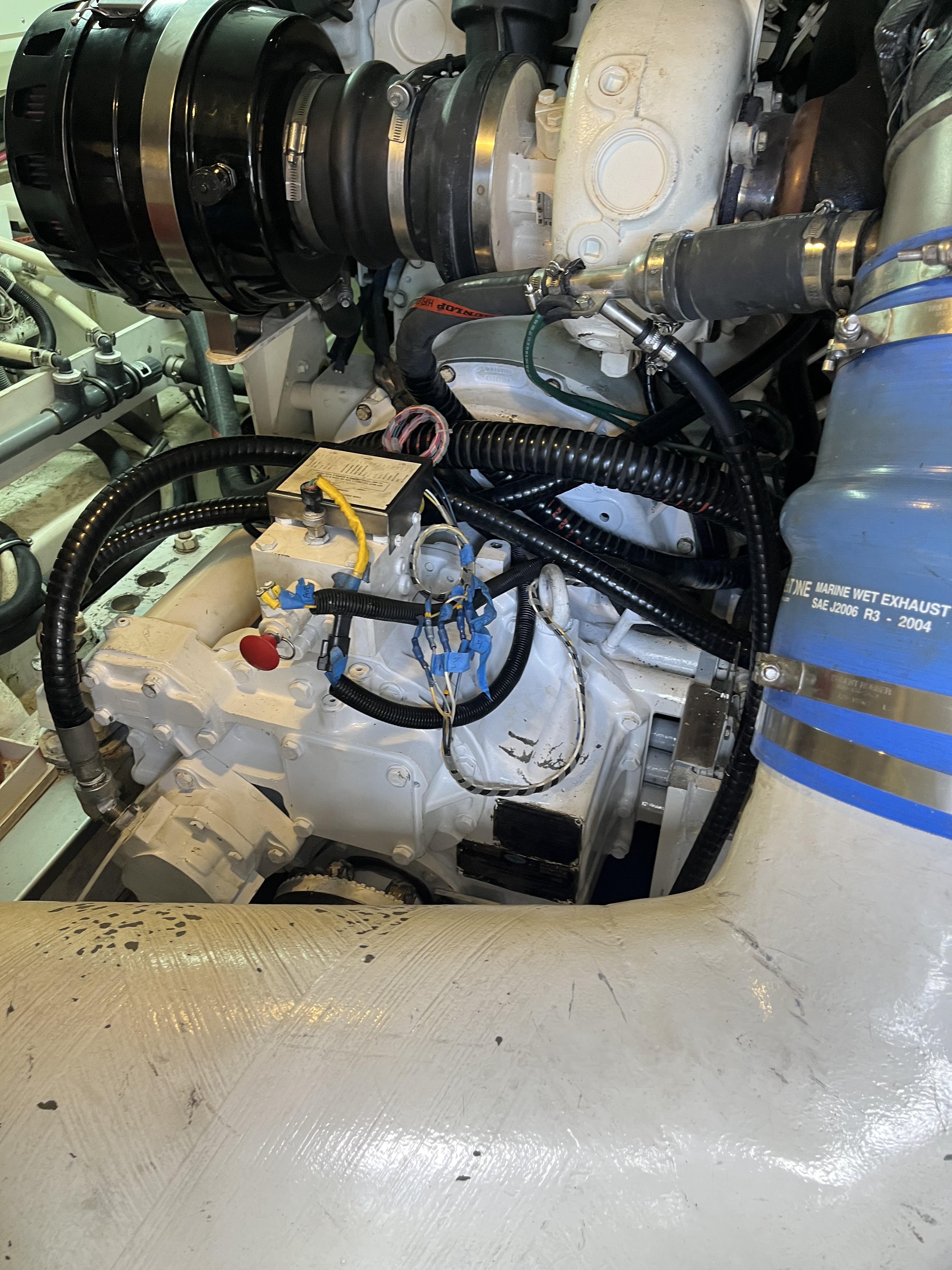 The boat did run well but not without issue. I went down and checked the transmission and engine room at least hourly. First check, I found a loose bolt on the exhaust collar of a turbo. Only burned one knuckle tightening that while underway. Then found a small water leak from the exhaust pipe and a small leak from the transmission at the reverse flow connection. I will tighten those down today, as the area was too hot and dangerous to tighten while underway. Hoping that will take care of it! I do not normally have to check the engine room while underway, but I was told to by both mechanics since they had everything apart. I am glad I did.