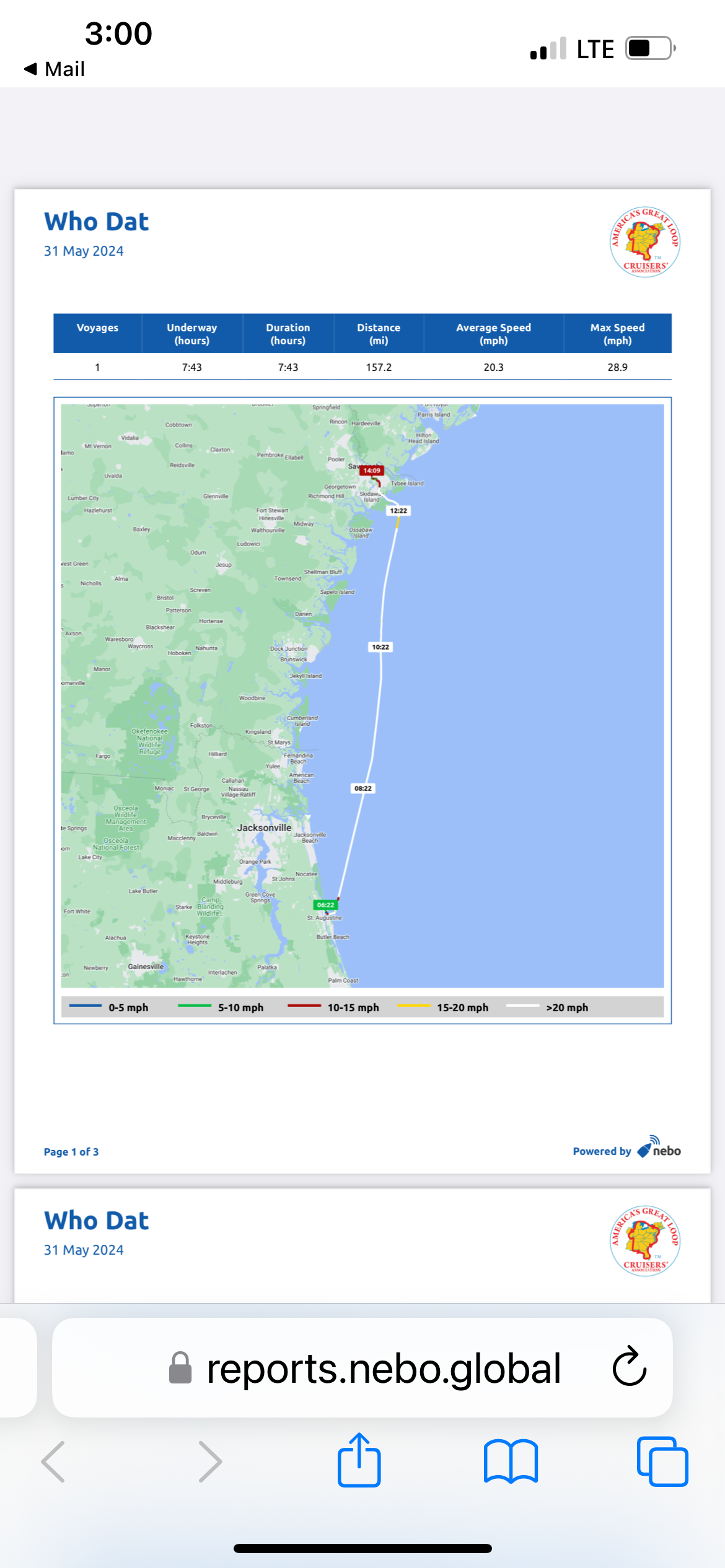Good morning from Savannah, GA. Yes, that is correct, we moved 160 miles Friday from St Augustine to Savanah GA on the Atlantic. This was a great test for the transmission.