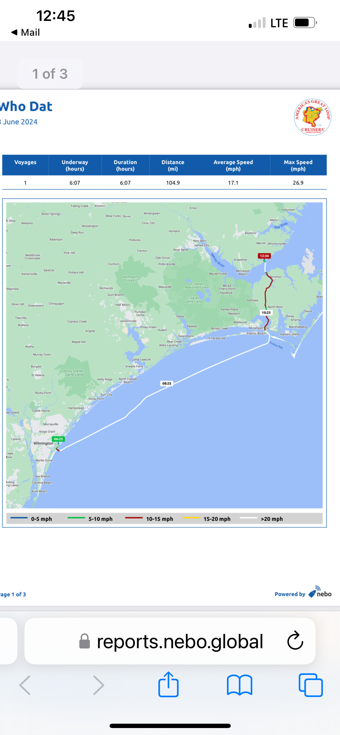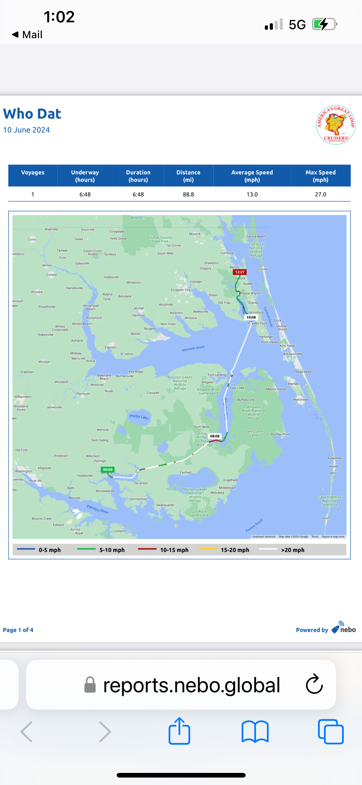 You can see how I had to change course in the middle of the outside run to drive the waves for an softer ride. Lots of fun.