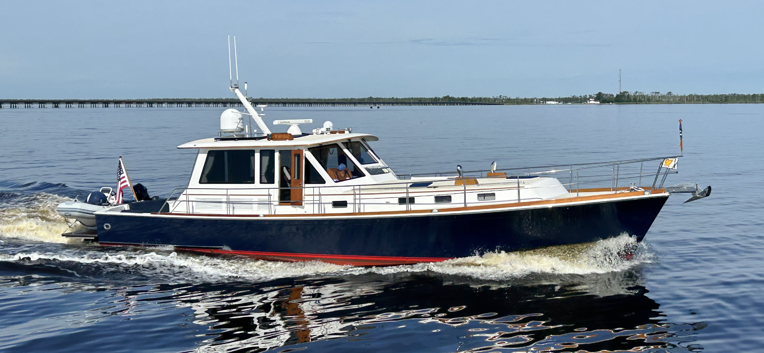 There was one bridge to deal with, it opens on request, but we ran harder to catch an opening with some fellow looper friends of ours, Compass Rose. We ran up to 28 MPH and I overheard Compass Rose telling the bridge tender that they would wait for us as they could see the “Green Smoke” from our pipes as I burned the money to hurry for them! The bridge is on the top of the Alligator River just before you enter the Albemarle Sound. Everyone warns you to be careful of the sound as it is open and can be very rough. We sure got lucky on that one today.