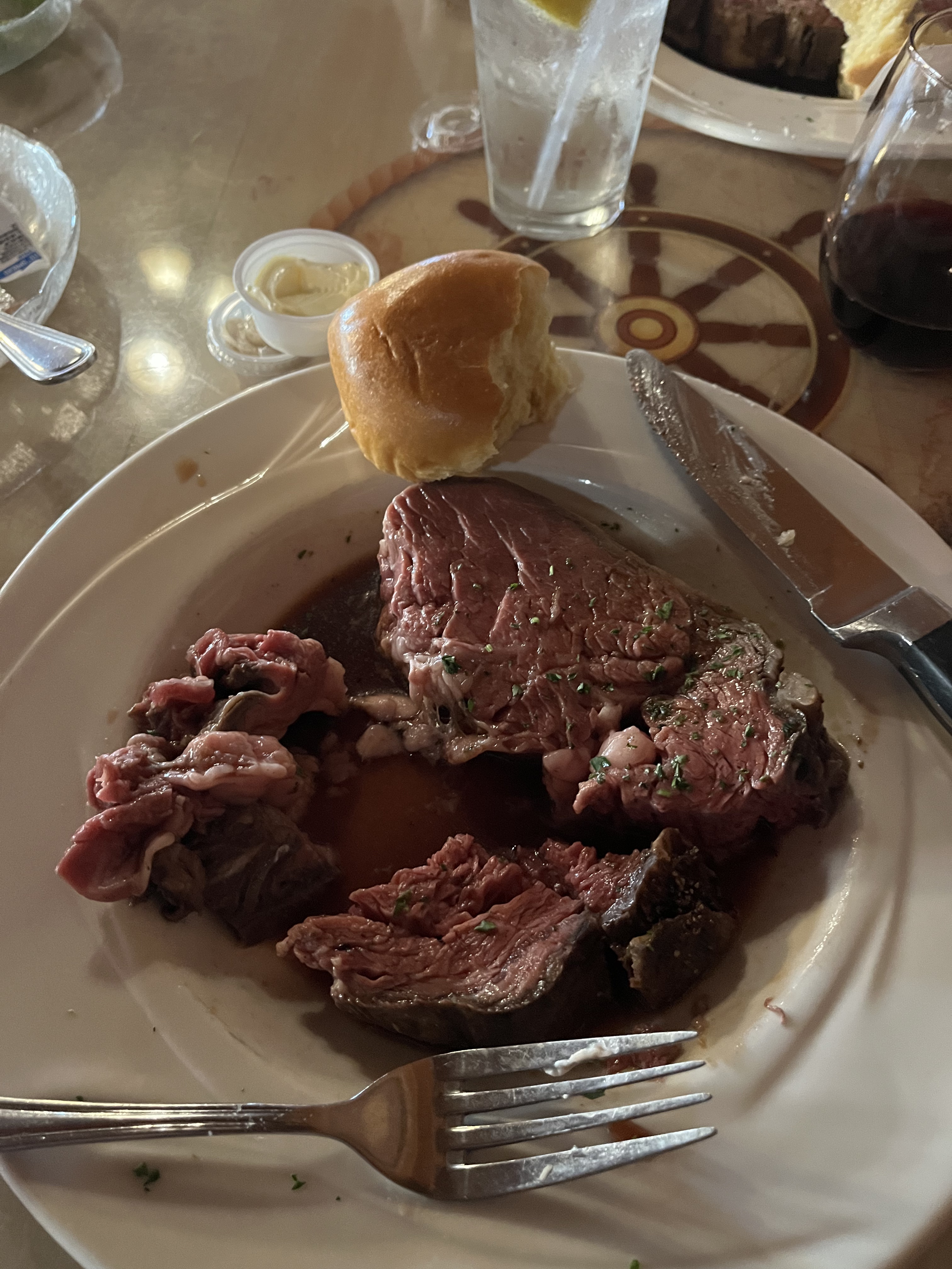 We did enjoy the prime rib dinner last night. I will admit I only had the Mate’s Cut, 16oz, instead of the Captain’s Cut at 32oz! It was great and then early to bed.