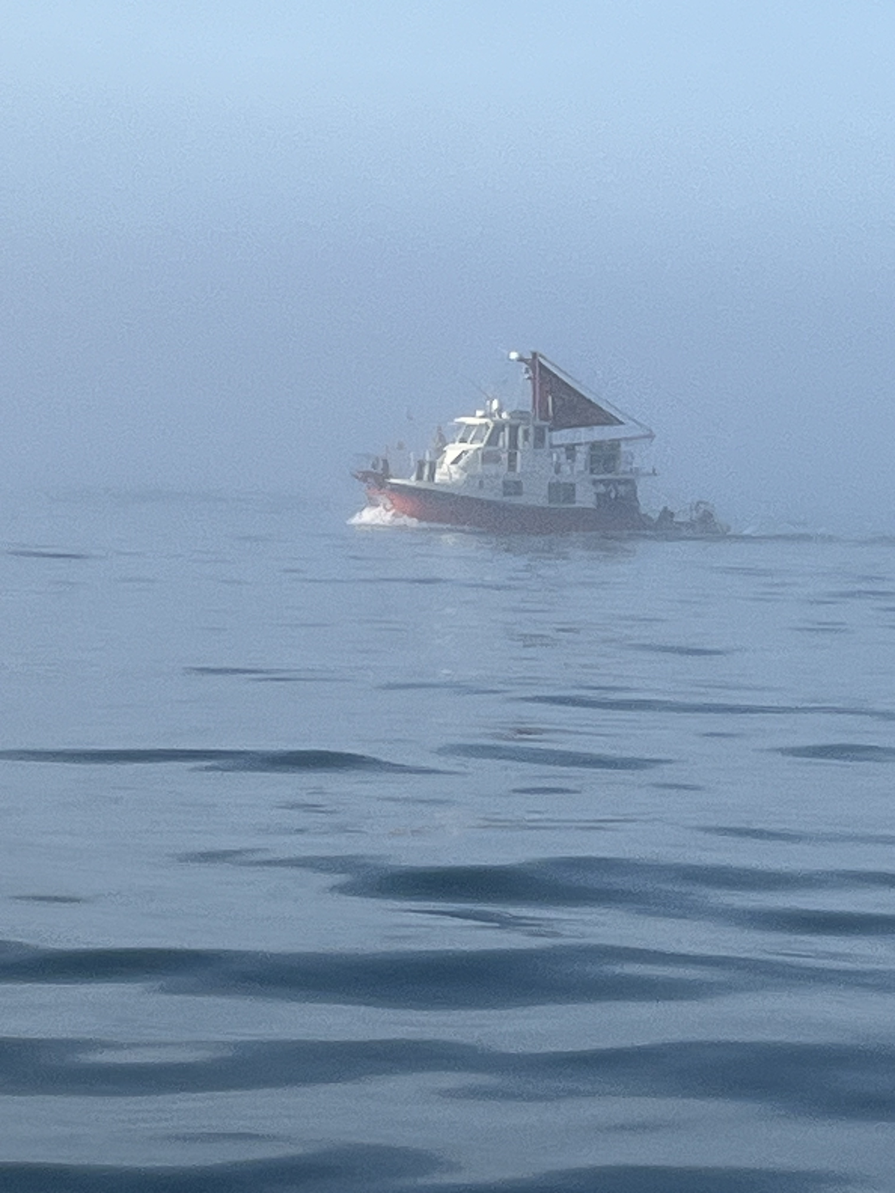We had ideal conditions for the outside run with calm winds and 1-2′ waves from the south on 6-7 seconds. Could not have asked for better conditions. We did start out with dense fog, and it was a challenge to get out of the channel and into the Atlantic Ocean. Made it out slowly and then it was time to throttle up for the long run.