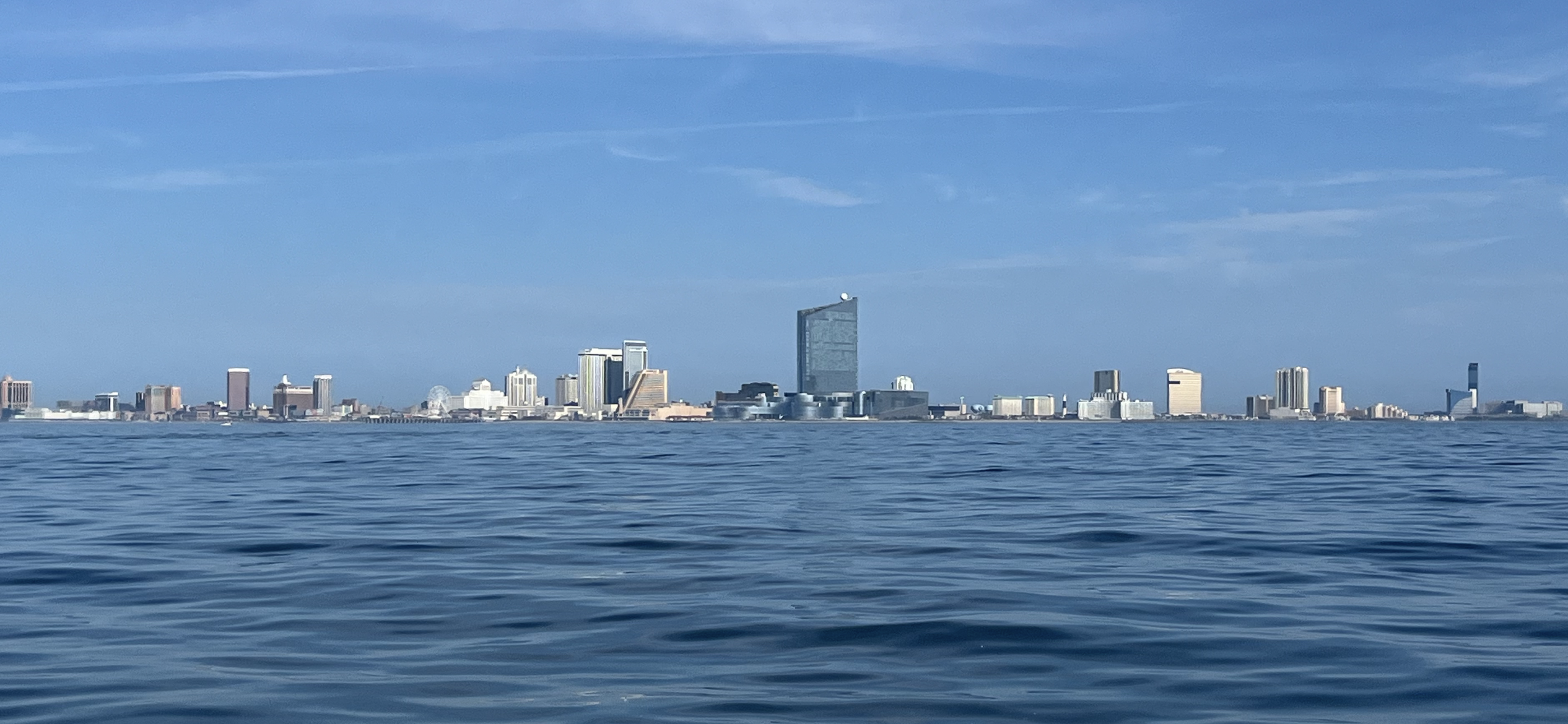 Going by Atlantic City with the calm seas and no wind.