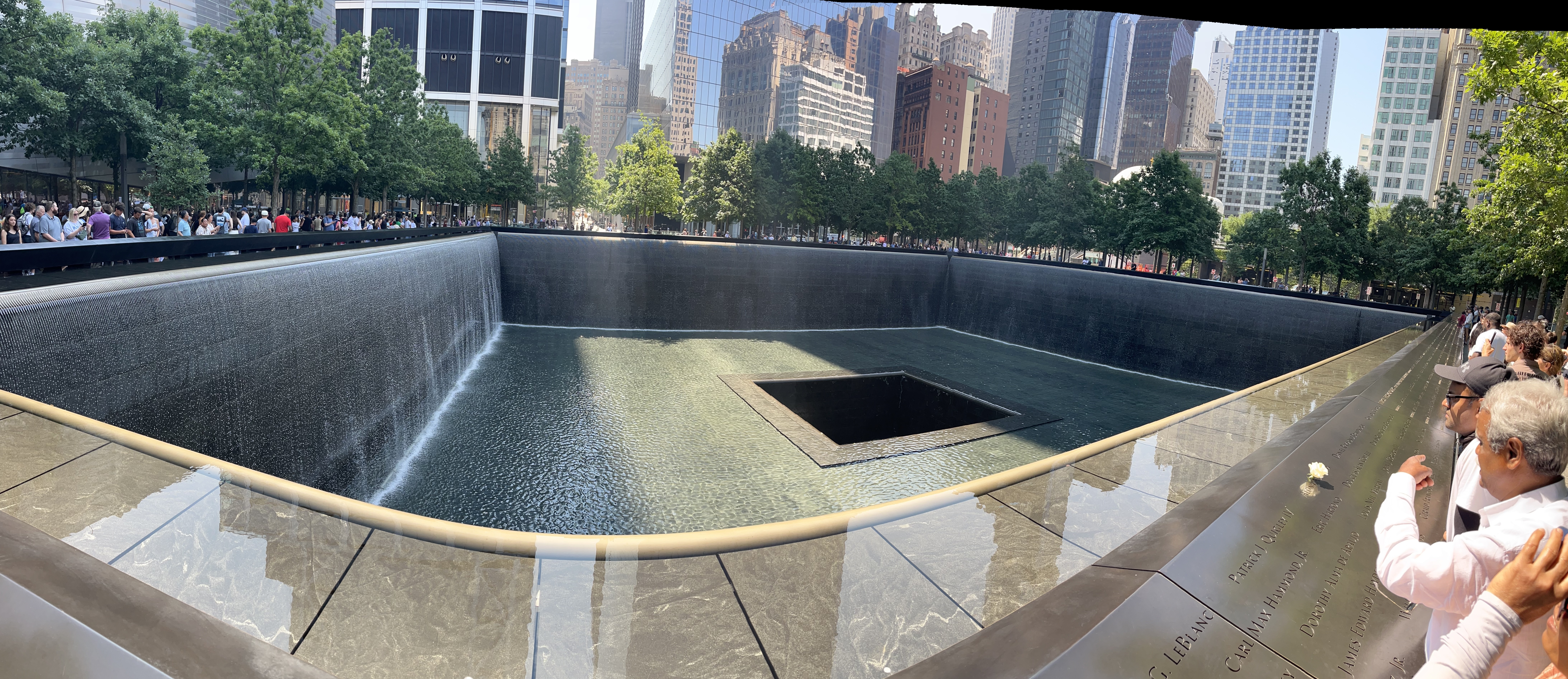 The North memorial was closed for service, but the south memorial was open and the water was flowing.