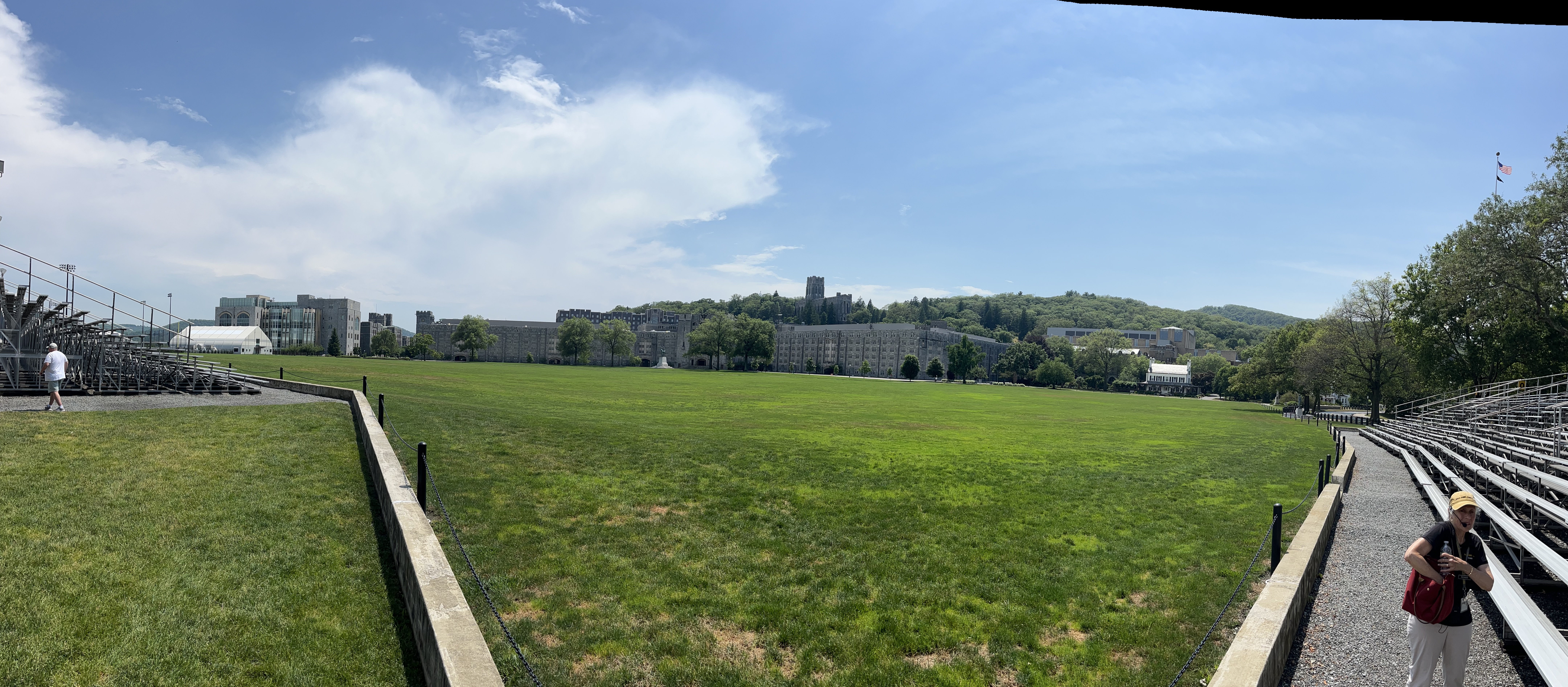 The parade grounds in front of the barracks. There is a chain around the huge field and only cadets are allowed on the lawn.