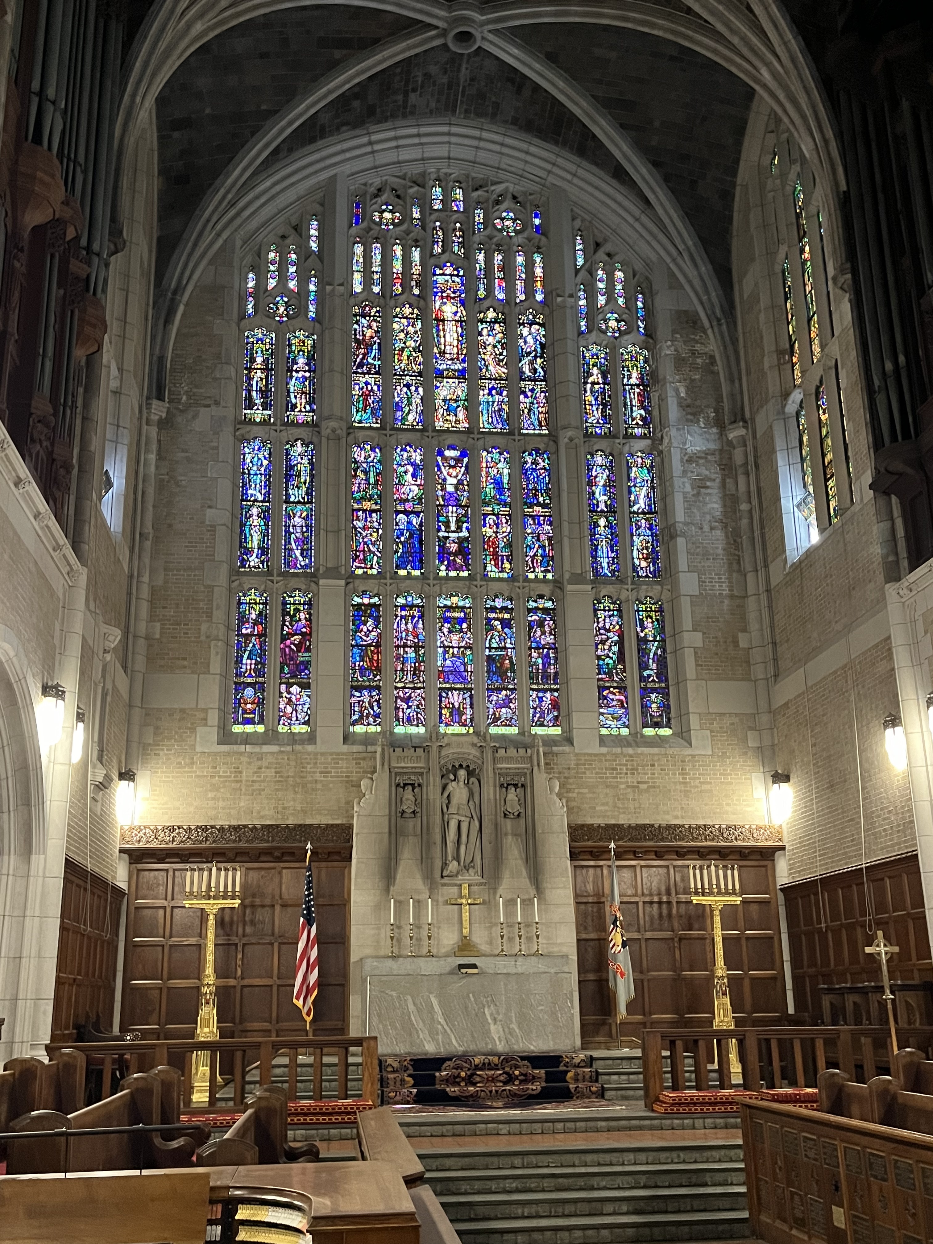 Inside the Chapel. This was gorgeous. The stained-glass window panels throughout the Chapel are given from several classes.