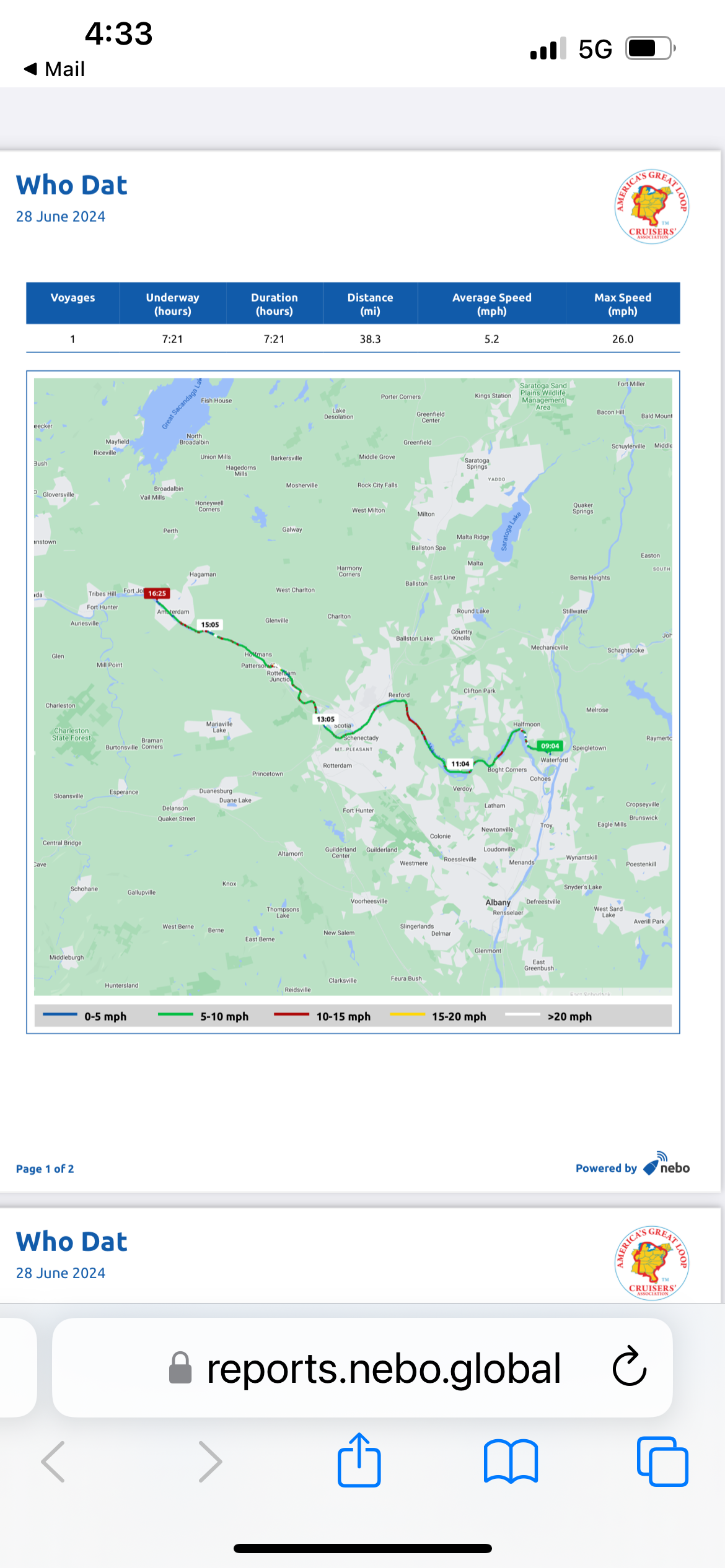 We left New Baltimore and headed up to Waterford, the beginning of the Erie Canal. This was a short run of 66 miles with calm winds and river. An easy run.