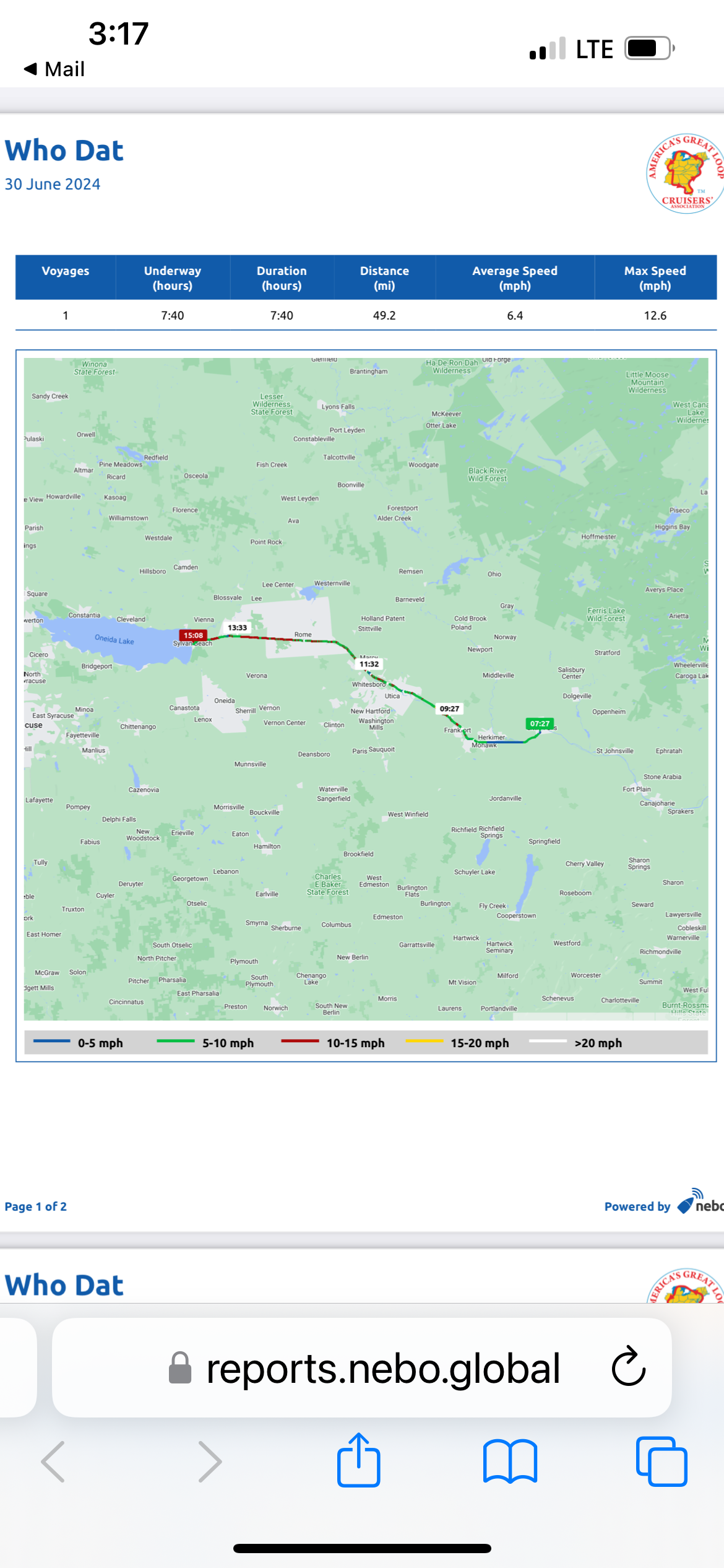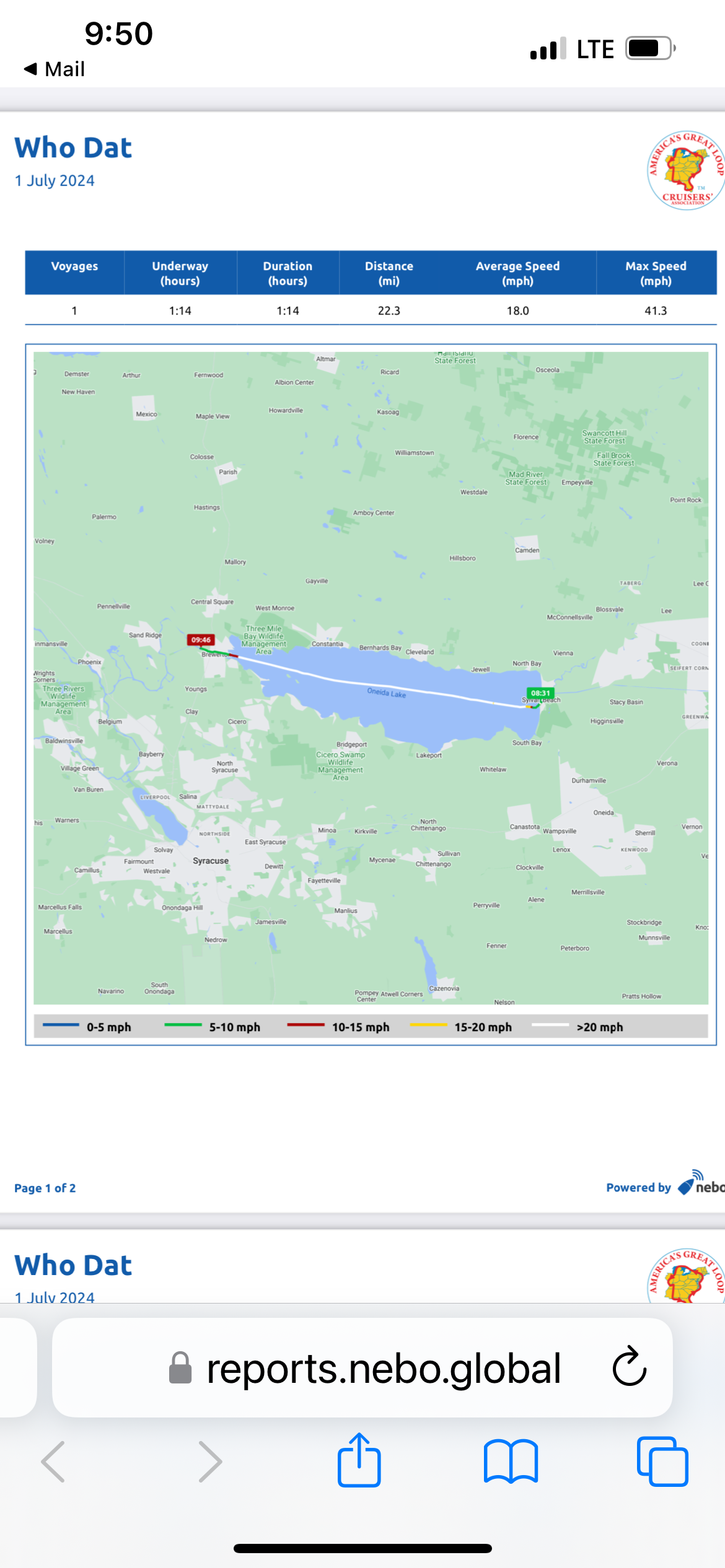 Sylvan Beach to Brewerton. This was a quick easy crossing and an opportunity to clean out the engines a little after all the slow running in the canal. I am pretty sure NEBO has our top speed wrong on this one! I am sure this big girl did not hit 41 MPH!