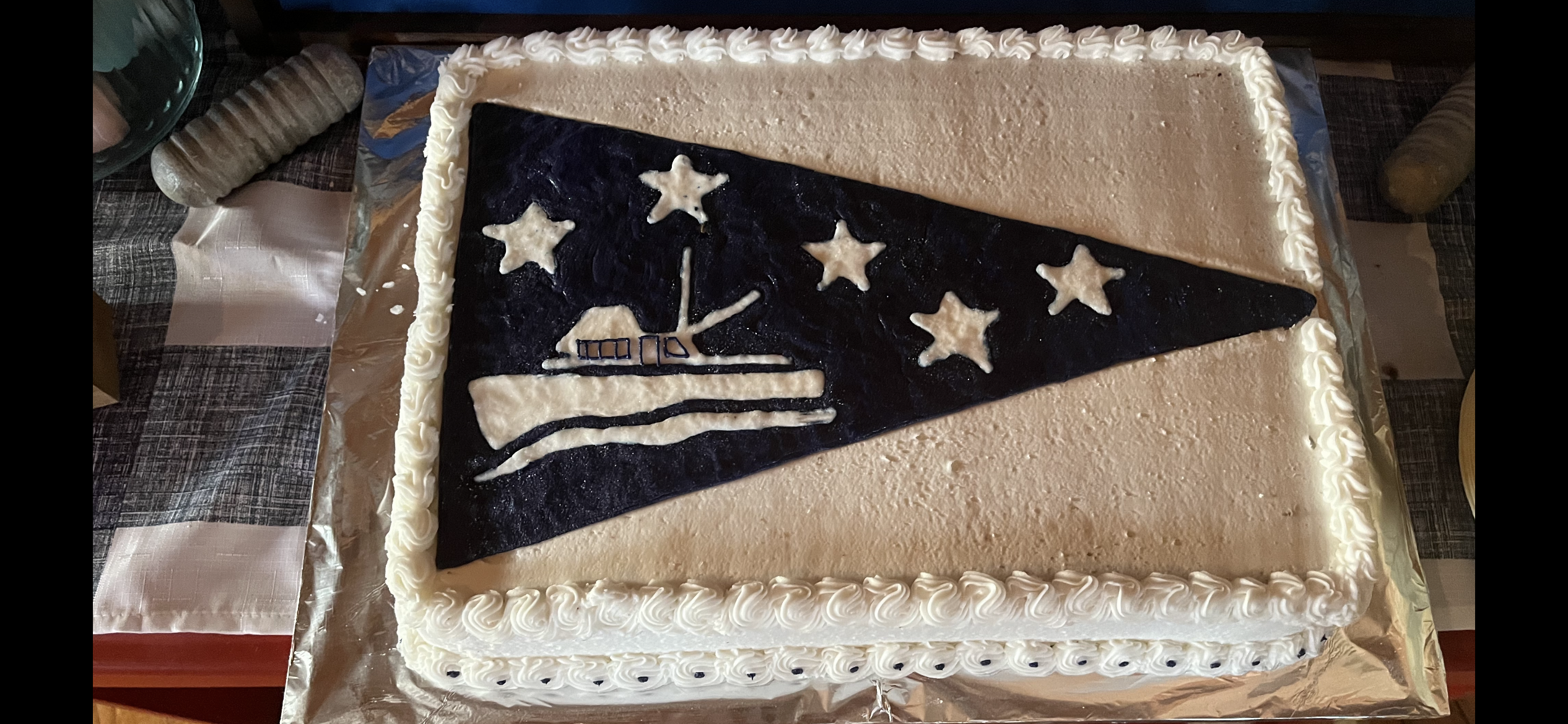 Loved the cake with the logo burgee! The five stars are for the 5 Great Lakes.