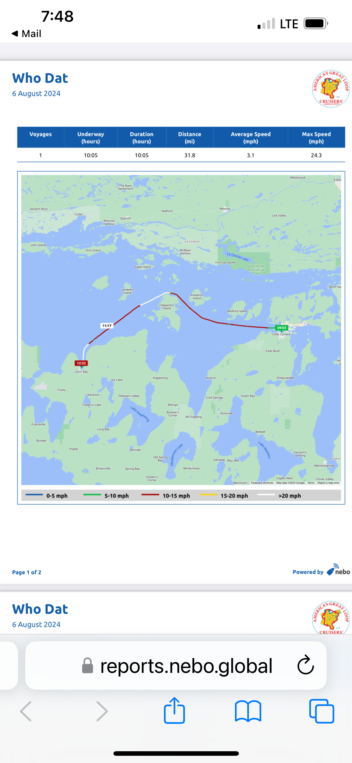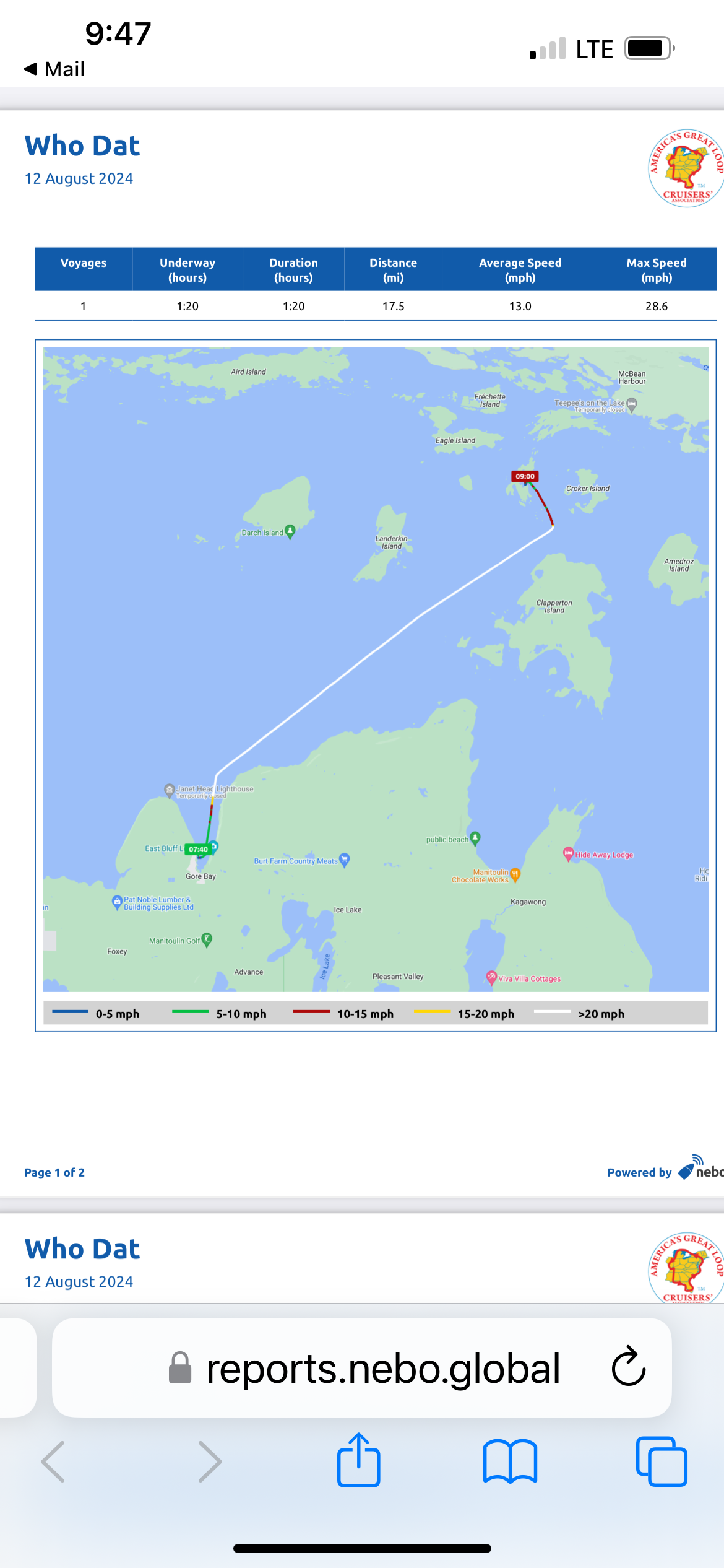 It was a nice easy run from Little Current to Gore Bay.