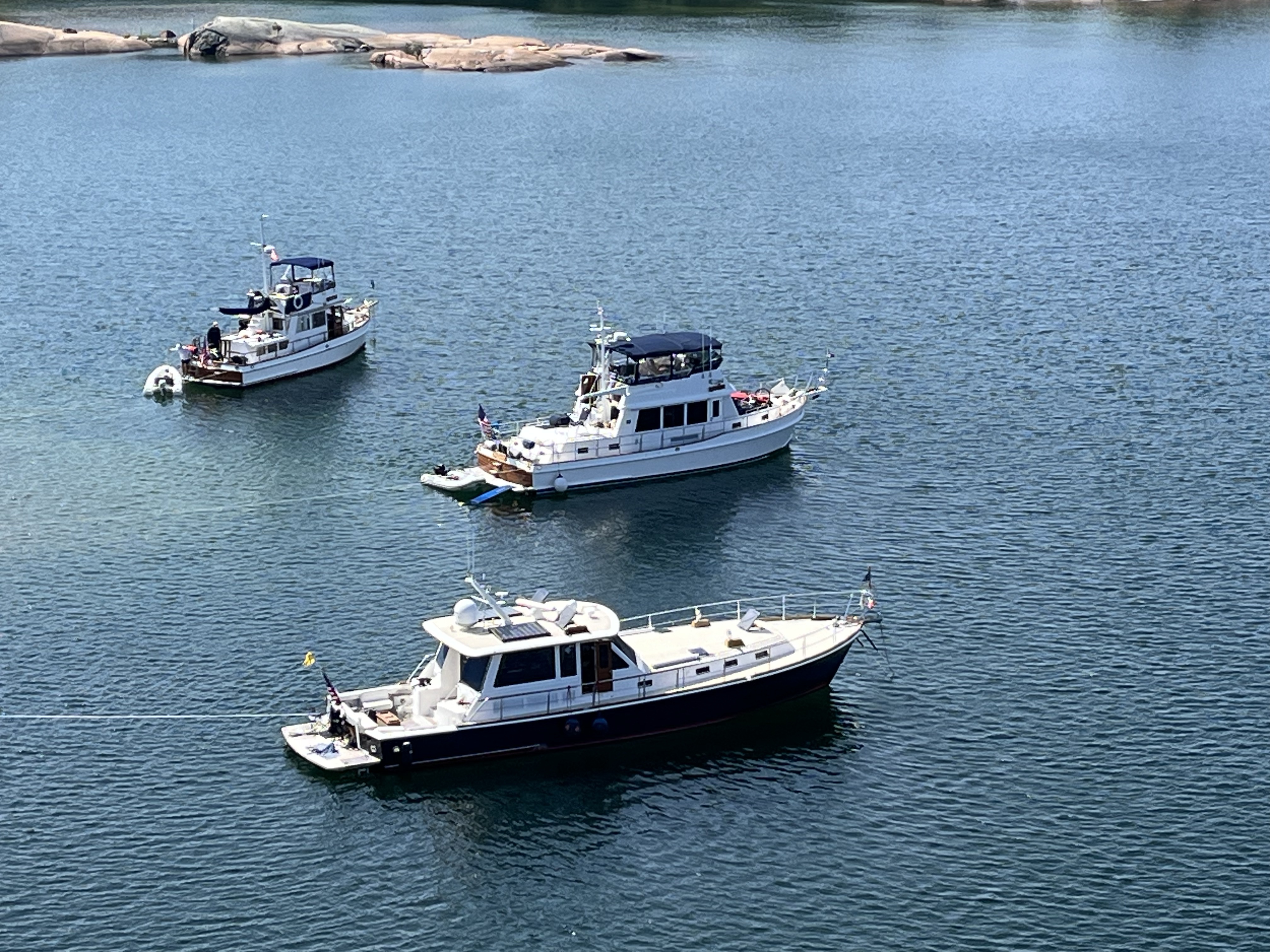 You can see the rock just behind the other two boats on anchor. It is the light tan spot in the water.