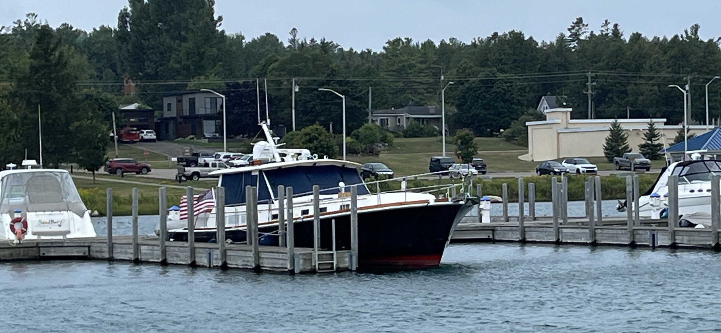 Who Dat all secure in our slip for 4 nights in De Tour waiting on a weather window.