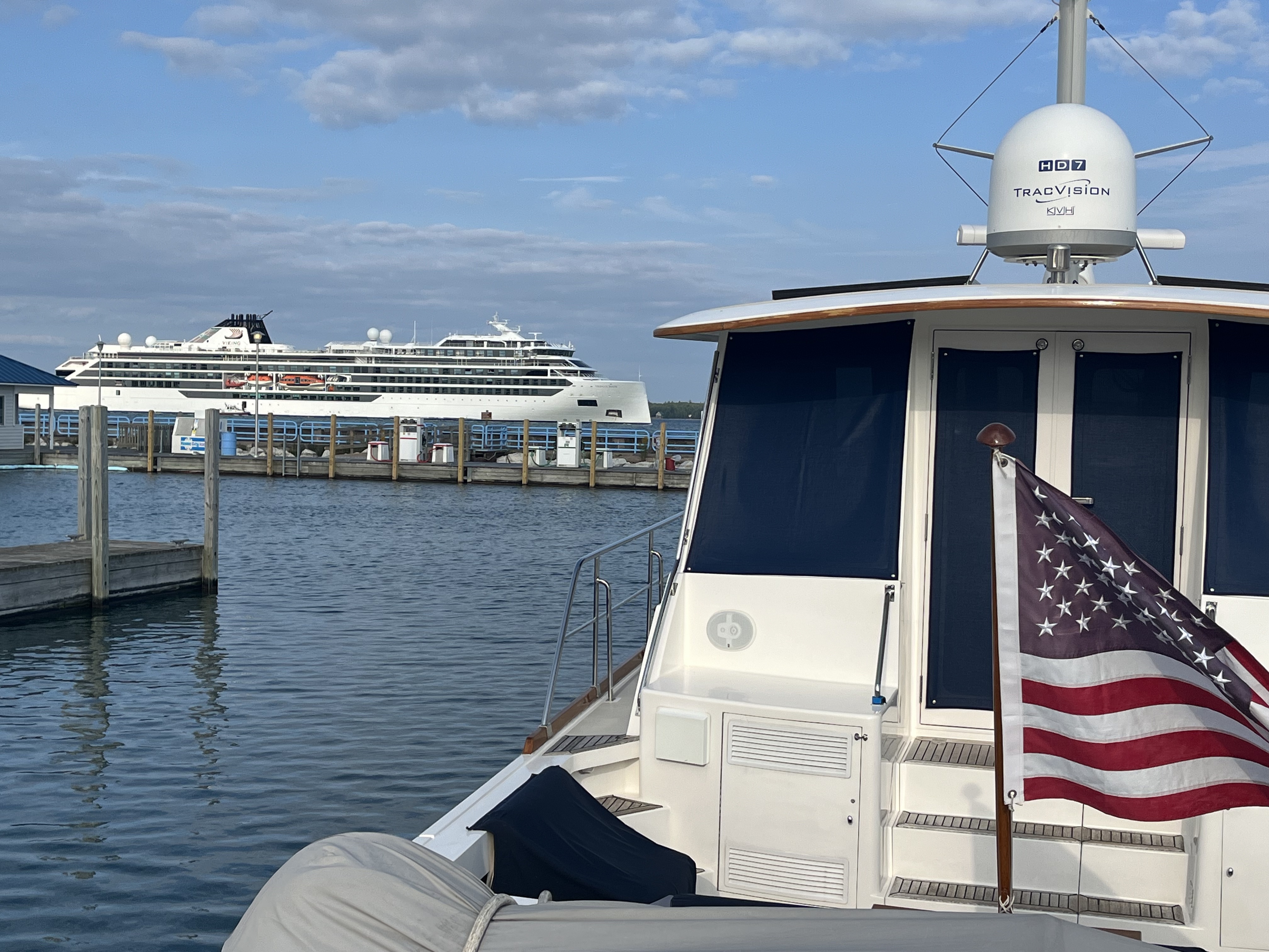 While docked in De Tour a Viking cruise ship when by coming from Sault St. Marie and heading to Mackinac Island.