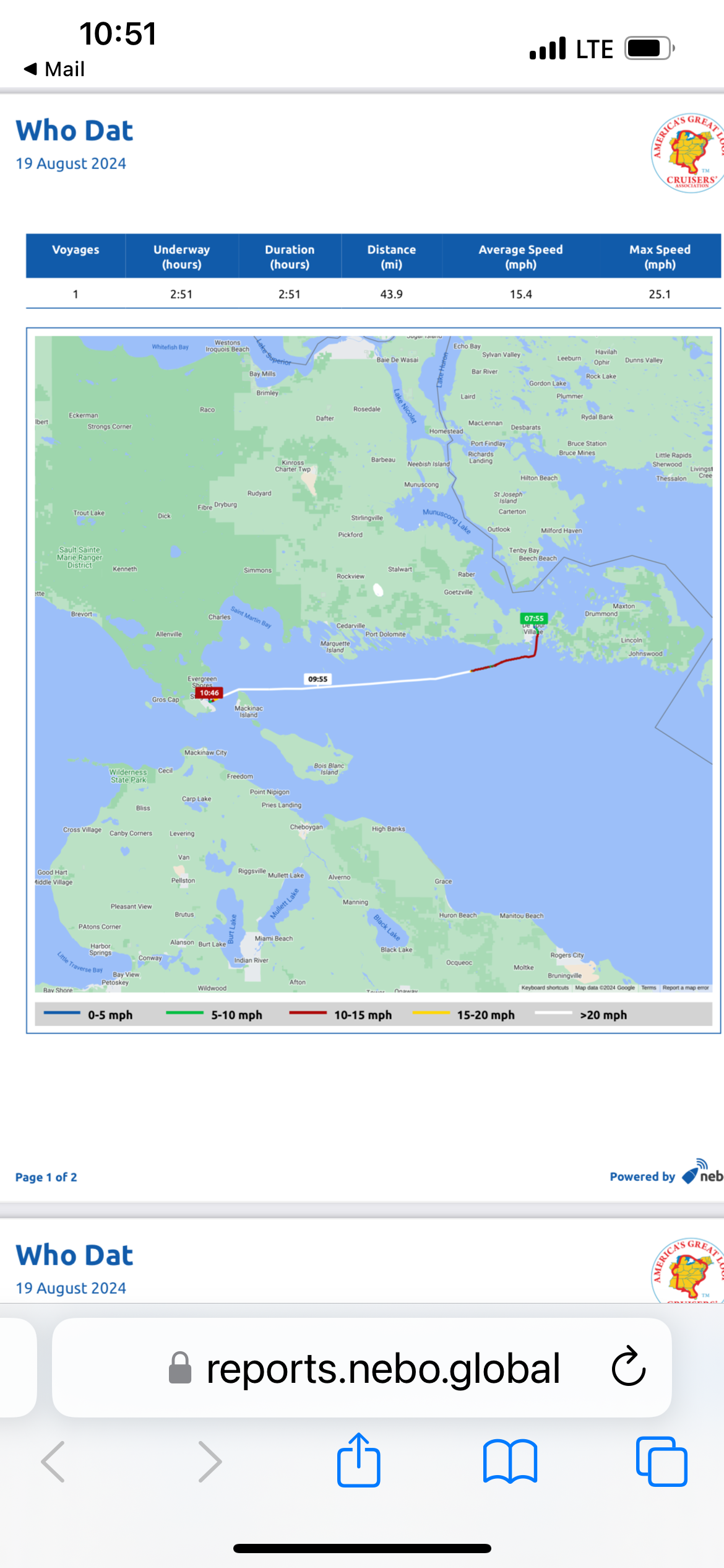 The red on the map is when we were going slowly, and the white is when we picked up speed due to the wind and waves.