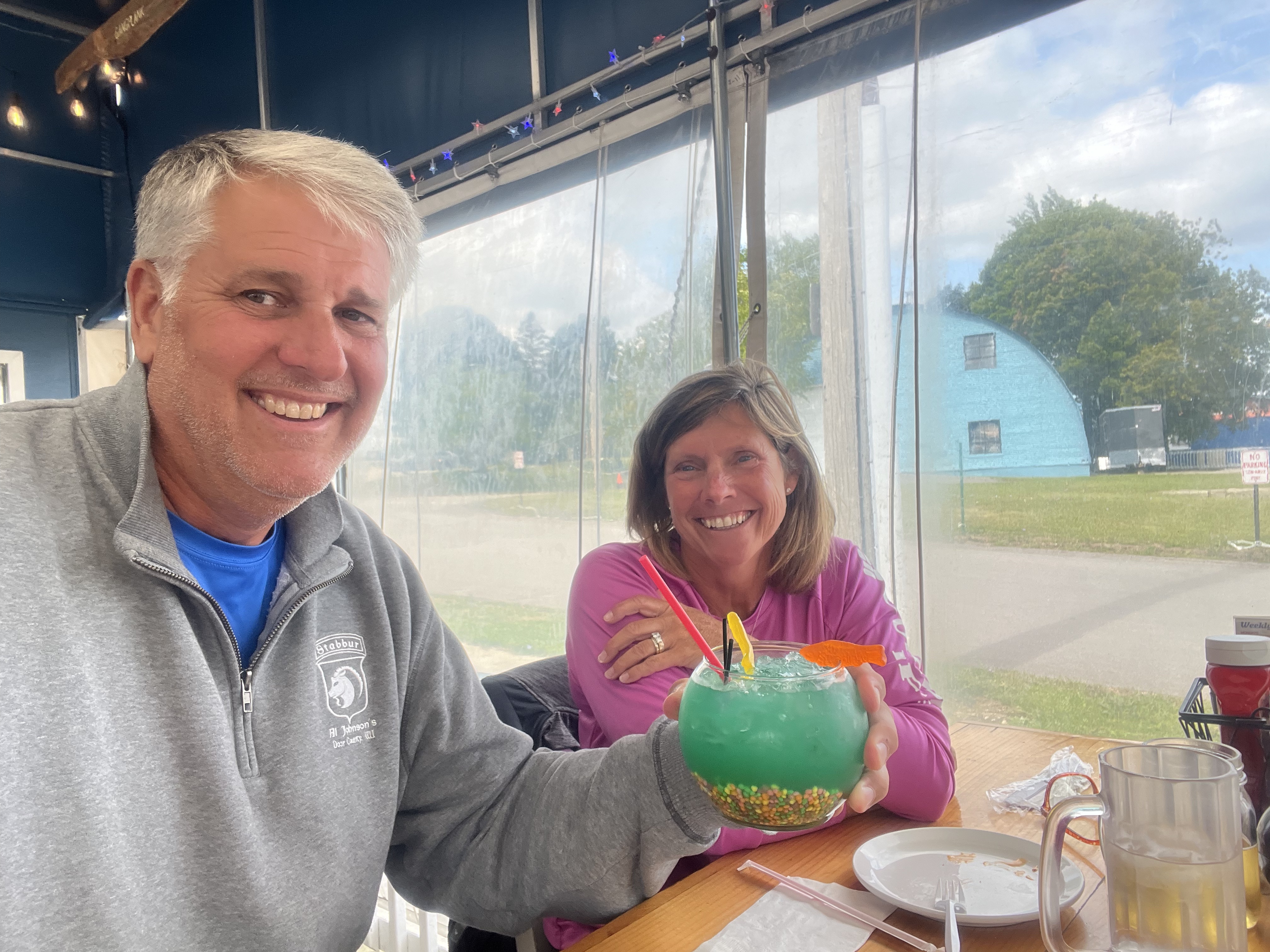 We did run across the street from the harbor for lunch at the Gang Plank for the famous fishbowl drink. Lots of sugar, as those are Nerds in the bottom of the glass.